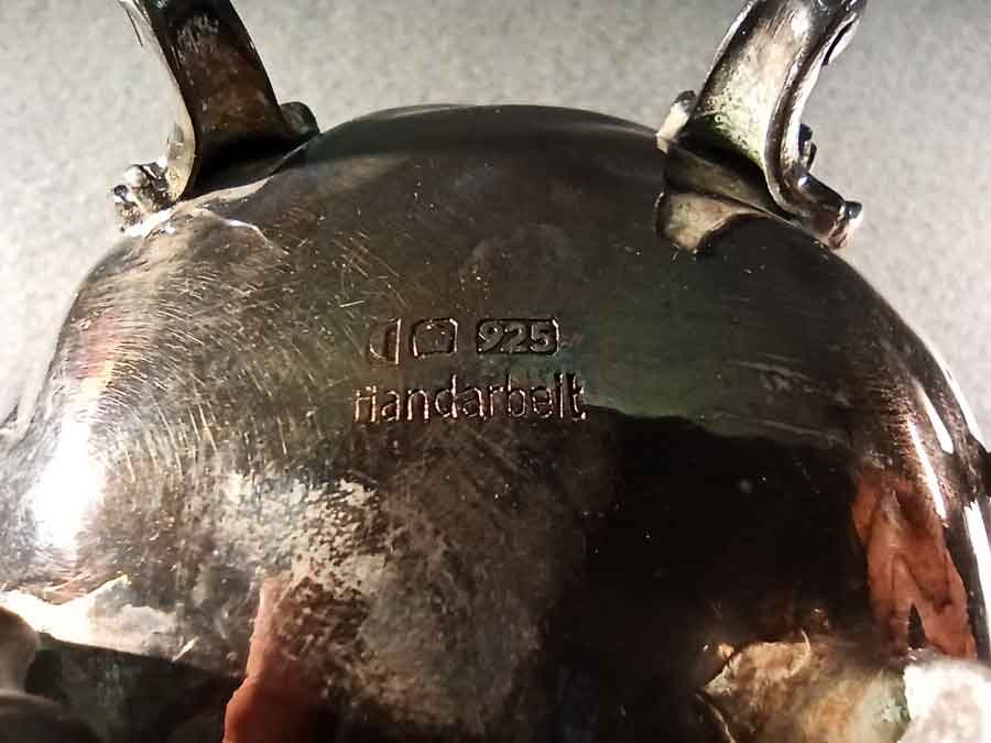 Gestempelt mit "Mond", "Krone", "925" (f. 925er Sterlingsilber) und "Handarbeit".