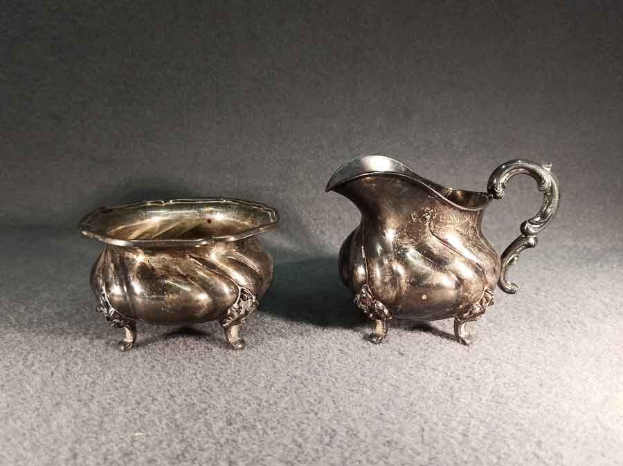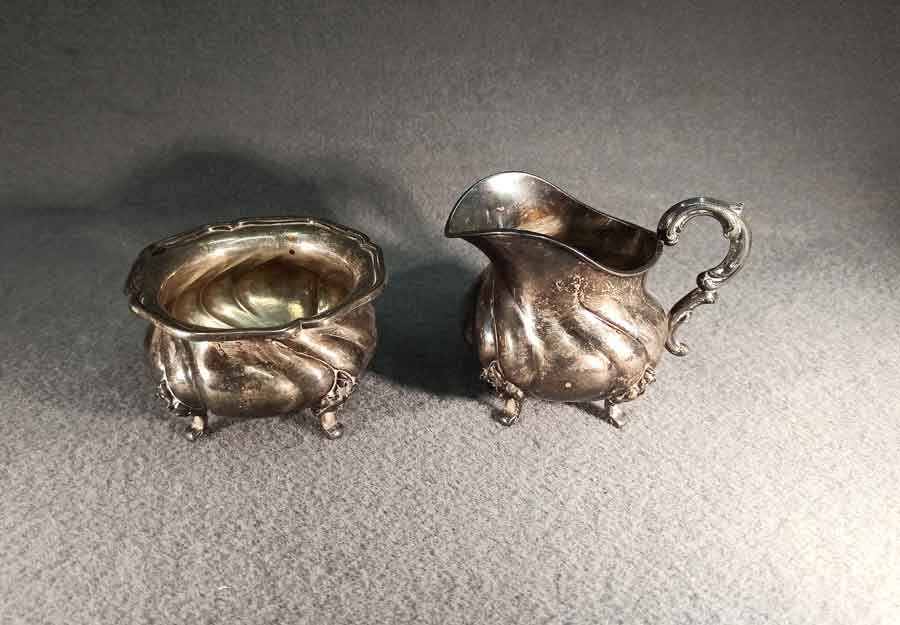 Zuckerschale und Milchkännchen, 925er Silber. Dresdner Hofmuster um 1920.