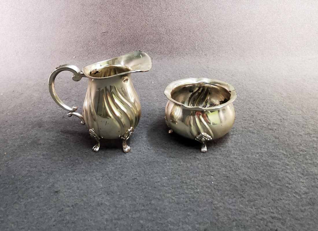 Zuckerschale und Sahnekännchen, Silber 800er