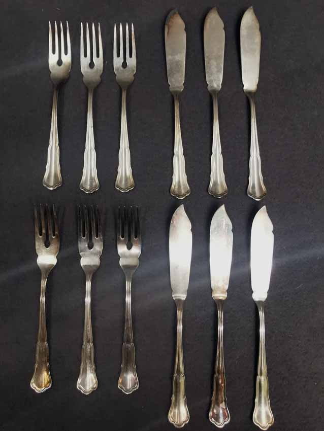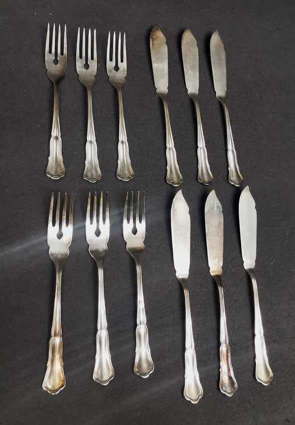 Fischbesteck für 6 Personen (12-teilig). Fa. Wilkens, 90er Silberauflage.