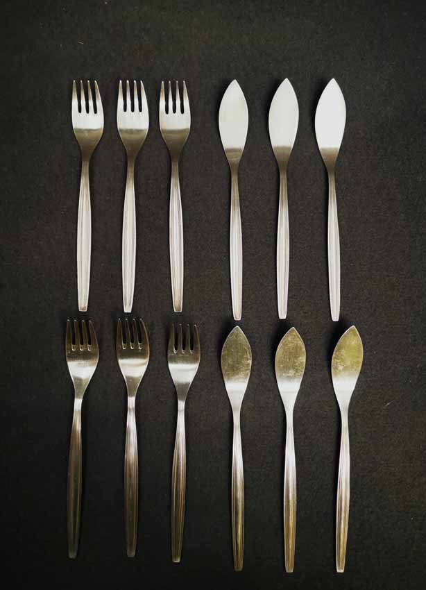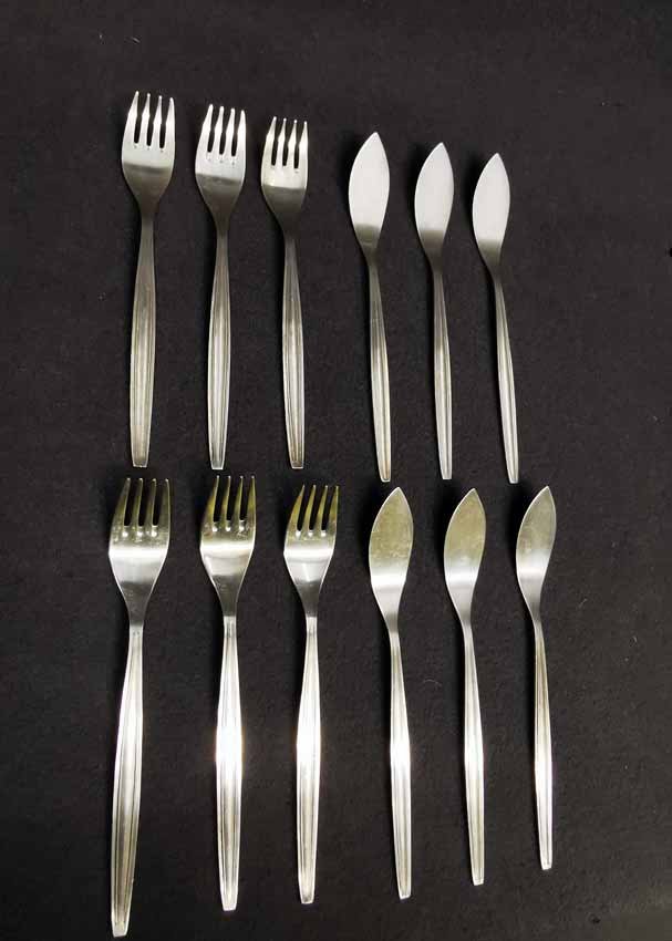 Fischbesteck, modernes Design, für 6 Personen (12-teilig) Fa. CFH, Hutschenreuther. 90er Silberauflage.