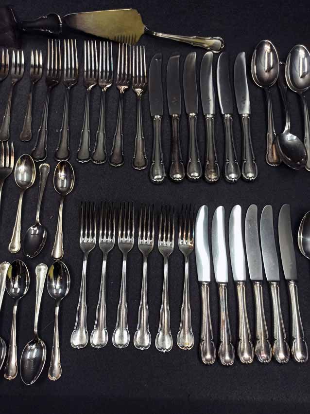 WMF Besteck, 79 Teile, Speise- u. Kaffeebesteck umfangreich, versilbert 90 er