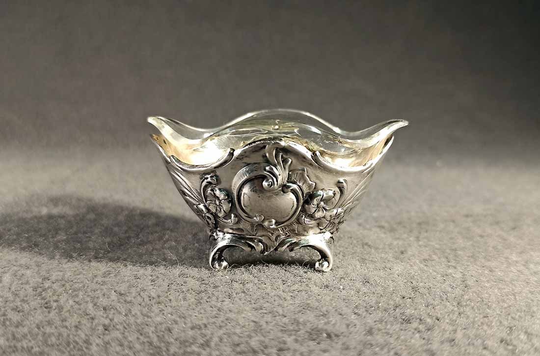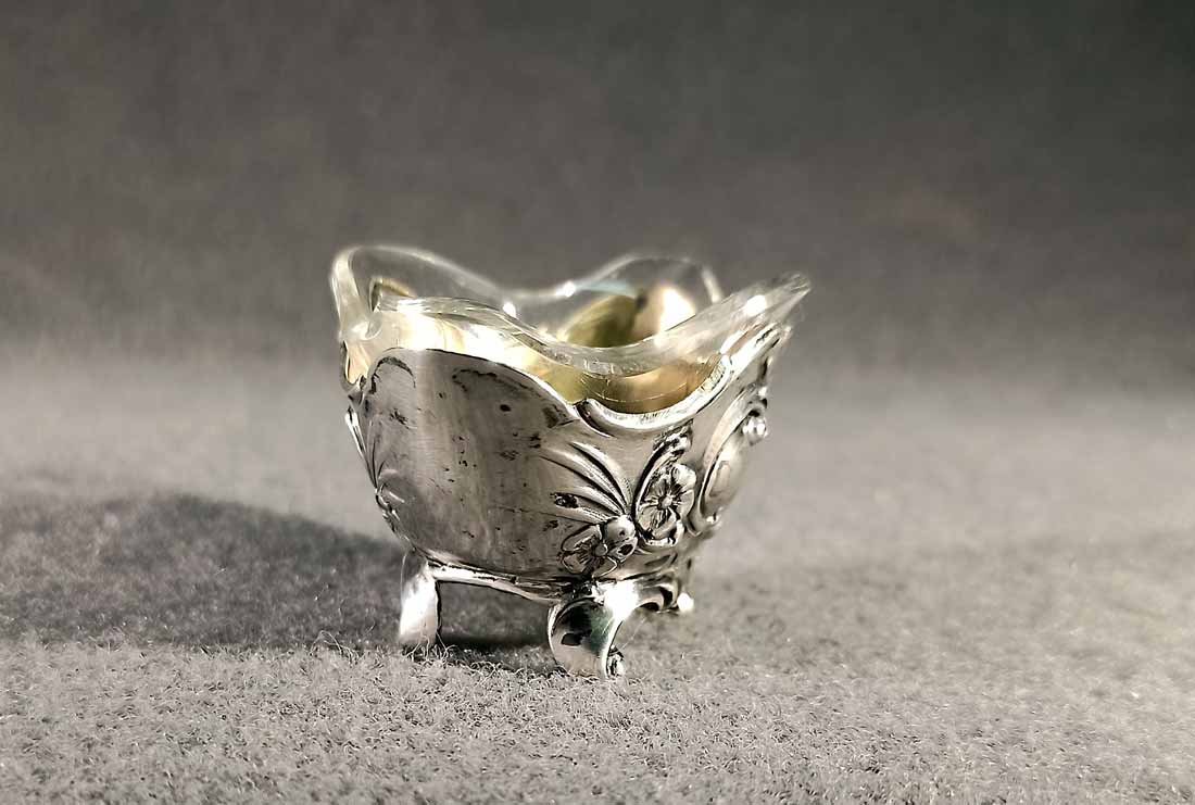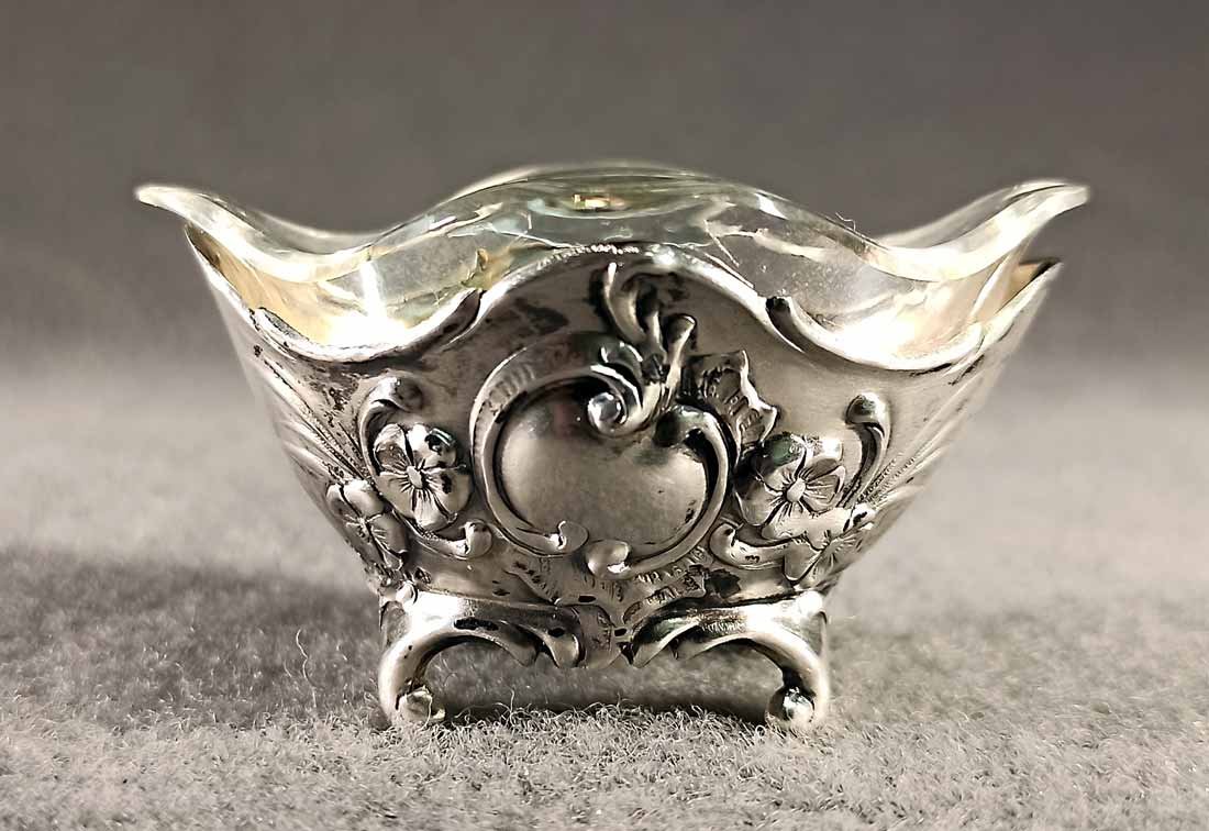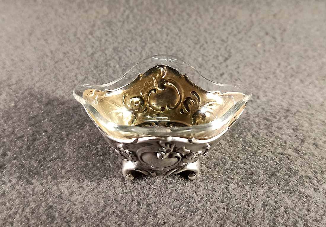Gewürzschälchen, Silber 800er mit Glaseinsatz, um 1890
