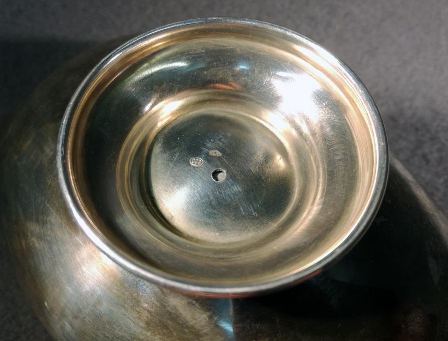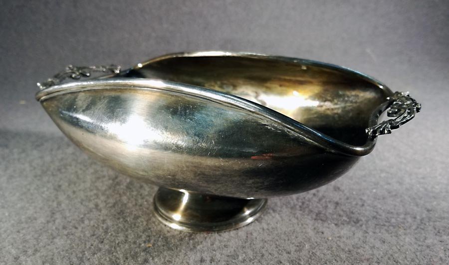 Reserviert!! Kleine Fußschale mit Henkeln, Wandung oben nach innen eingezogen, Silber 800er.
