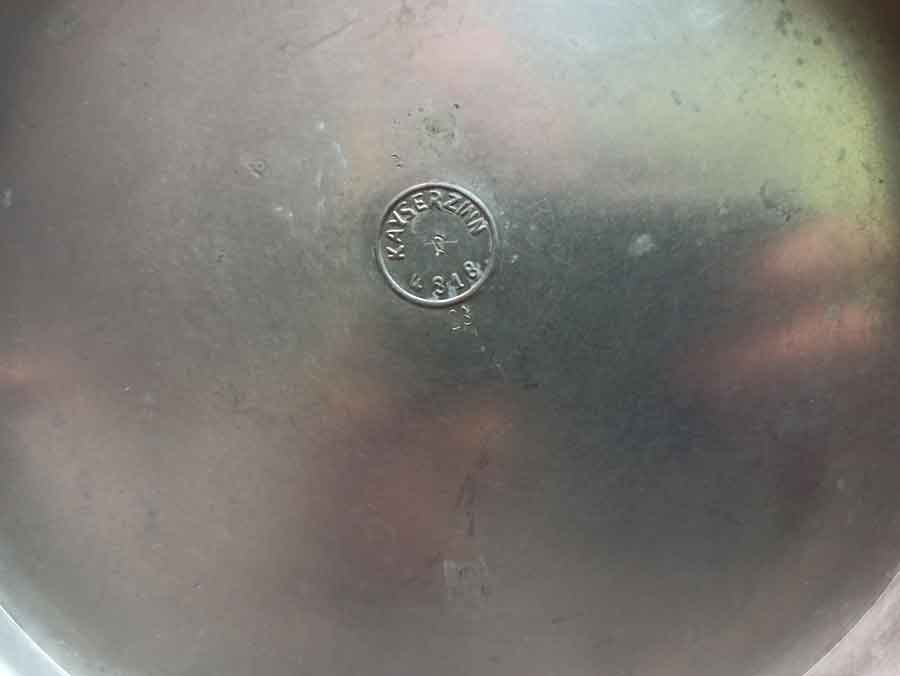 Zinn gegossen, H 24 cm. Am Boden Reliefmarke Kayserzinn und Modellnr. 4318. Siehe: Metallkunst der Moderne, Sammlung Bröhan IV, S. 302, Abb. 317.