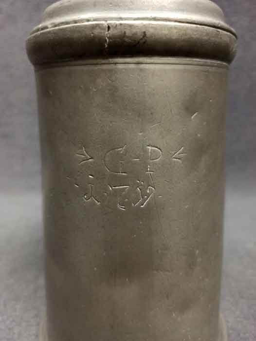 Trinkkrug 1709, Zinnkrug mit Deckel, Süddeutsch od. Österreich