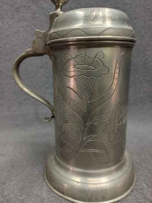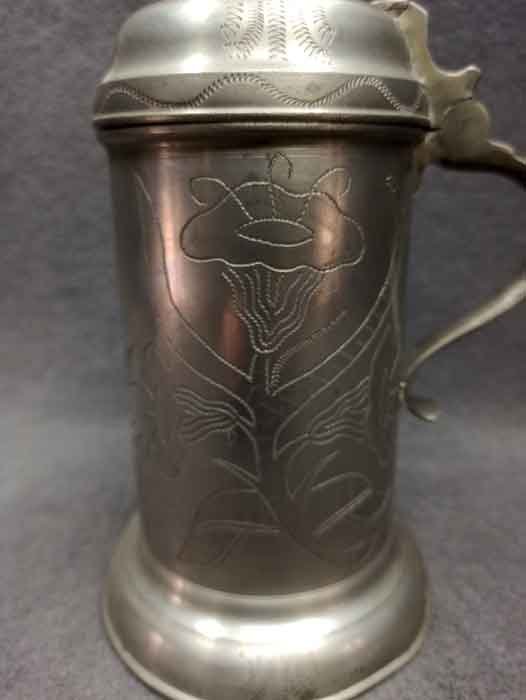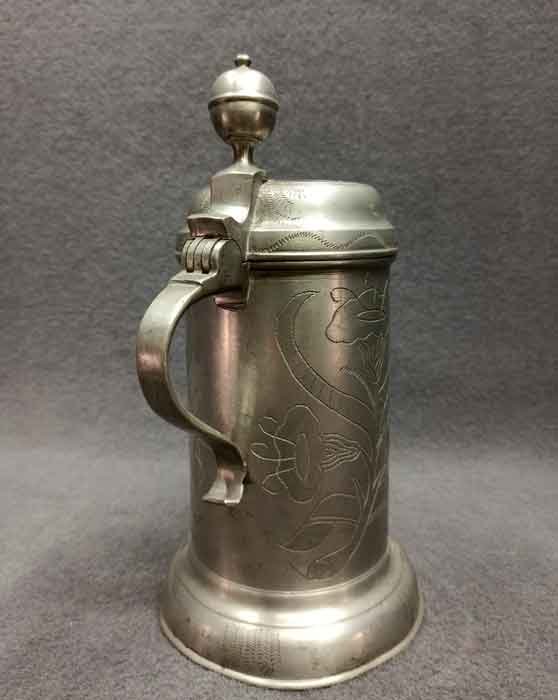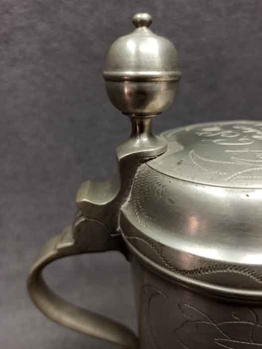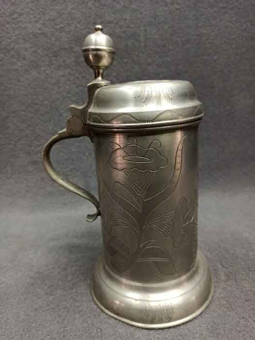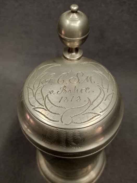 Zinn Walzenkrug, 1818, Carl Gottlob Noster, Meister in Oschatz.