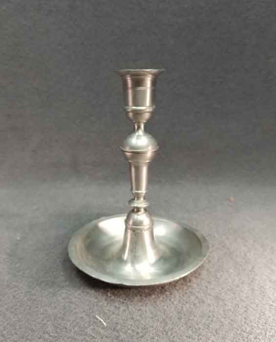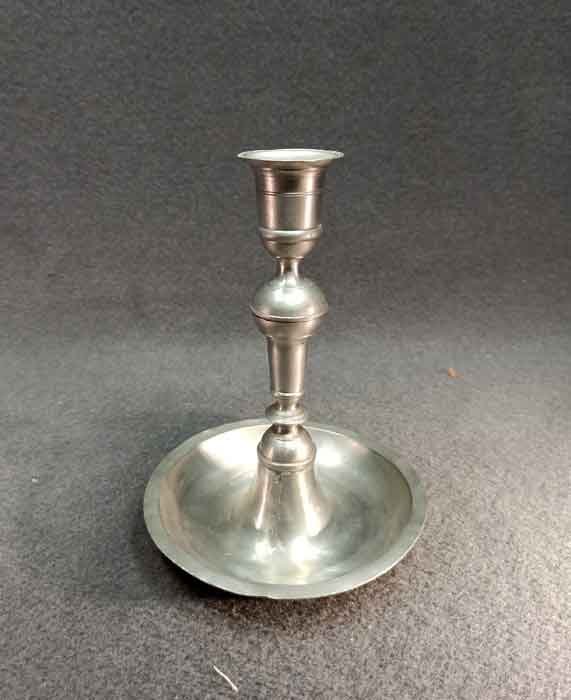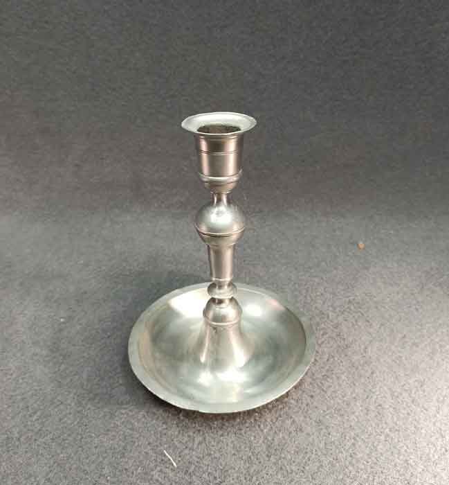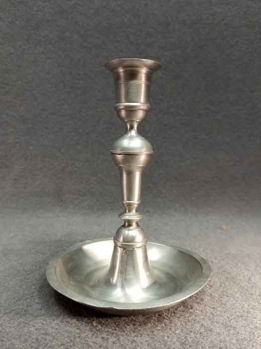 Zinnleuchter, guter Zustand, geringe Gebrauchsspuren. Zinnmarken ungedeutet. H. ca 16 cm
