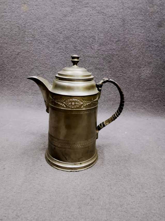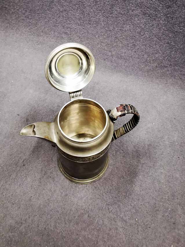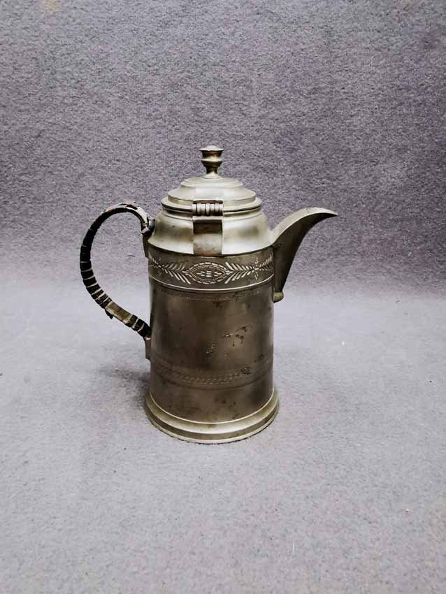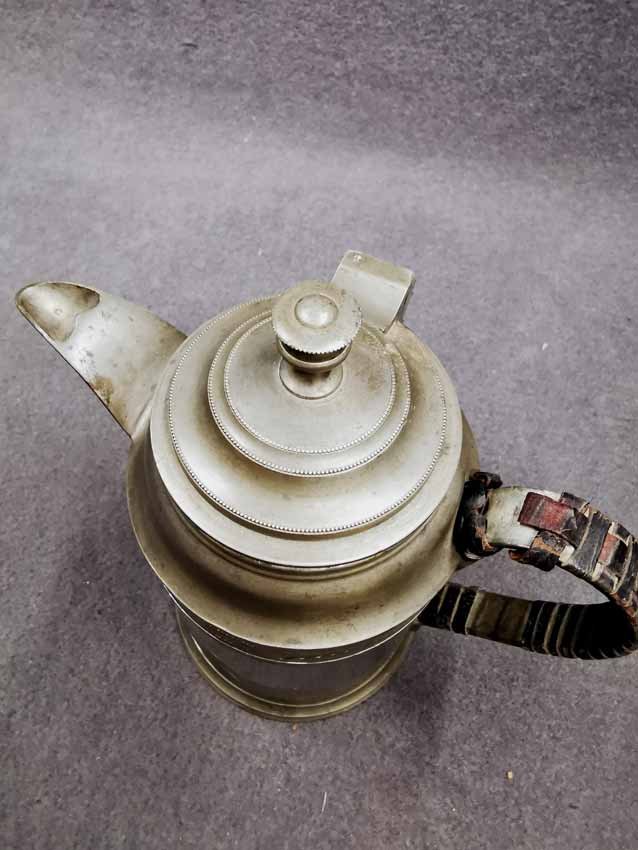 Zinnkanne, M.19.Jh. spätes Biedermeier. Seitlich scharnierter Deckel.