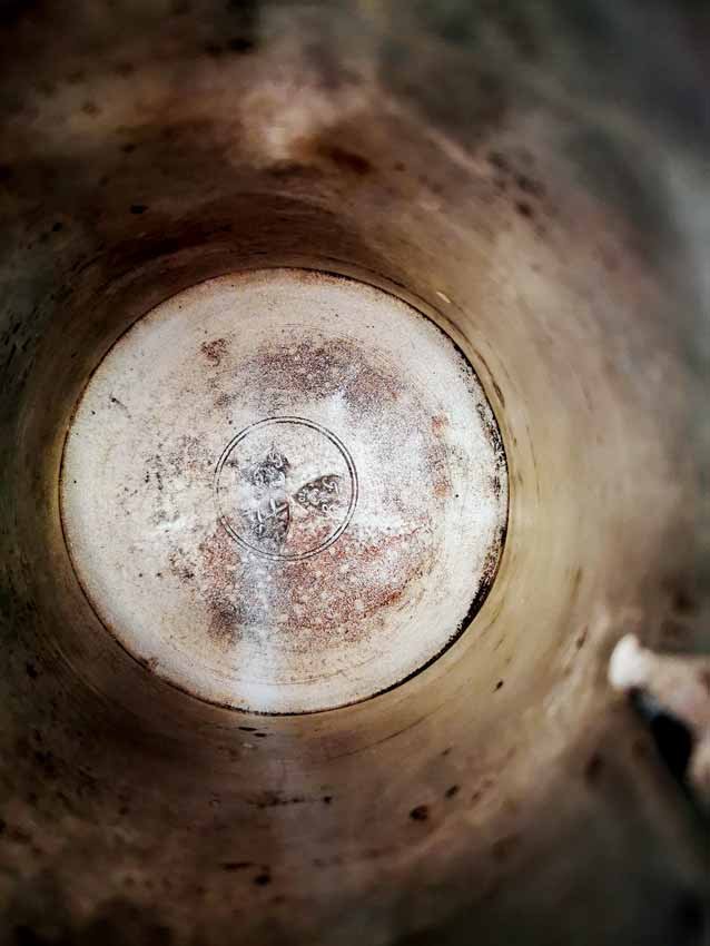 Im Boden innenseitig gemarkt, Drei-Stempel-System, verm. Sachsen, Marken nicht aufgelöst.