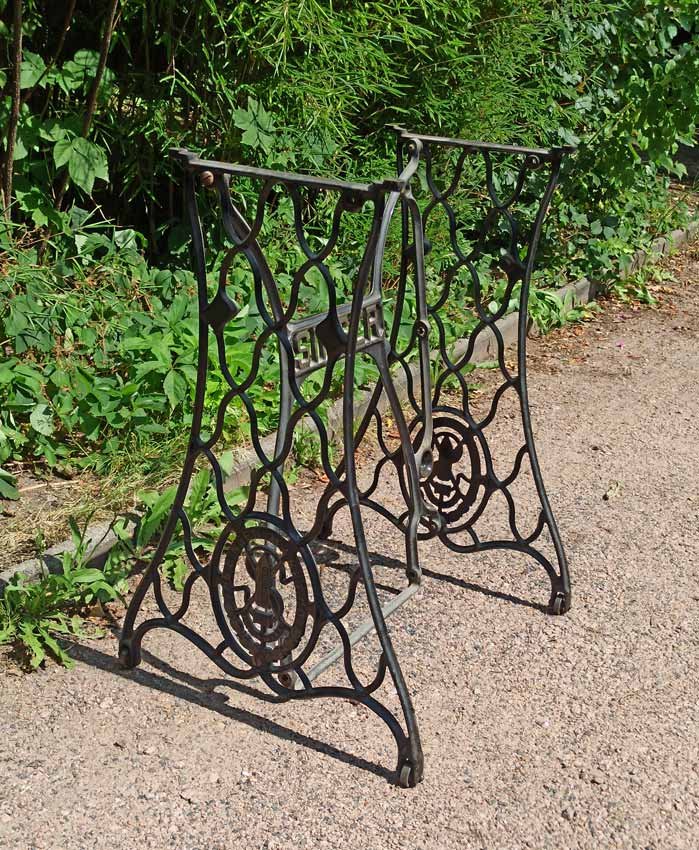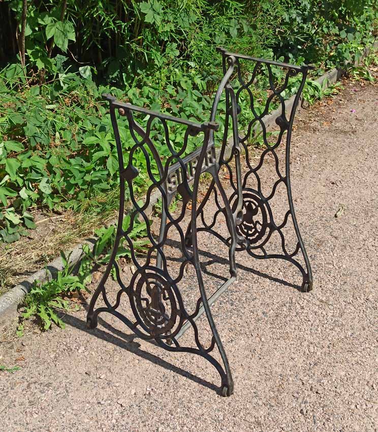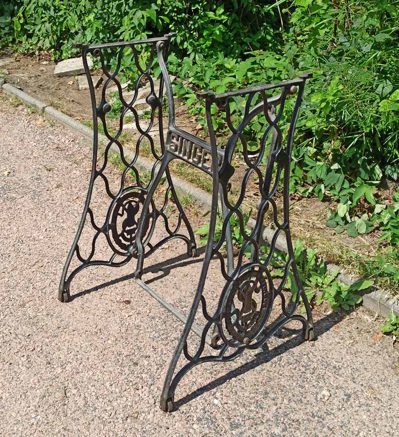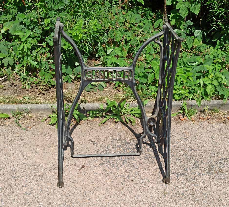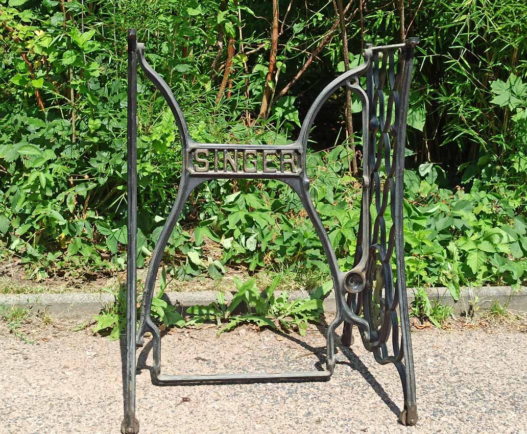 Nähmaschinengestell Singer, Gusseisen auf Rädern. H. 72, B. 53, T. 31 cm.