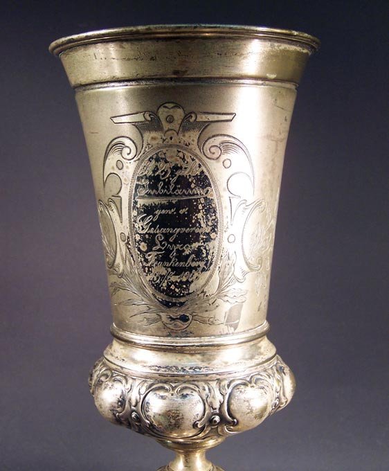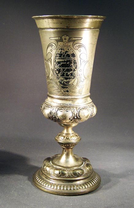Pokal versilbert, datiert 1903. Mit Widmung: