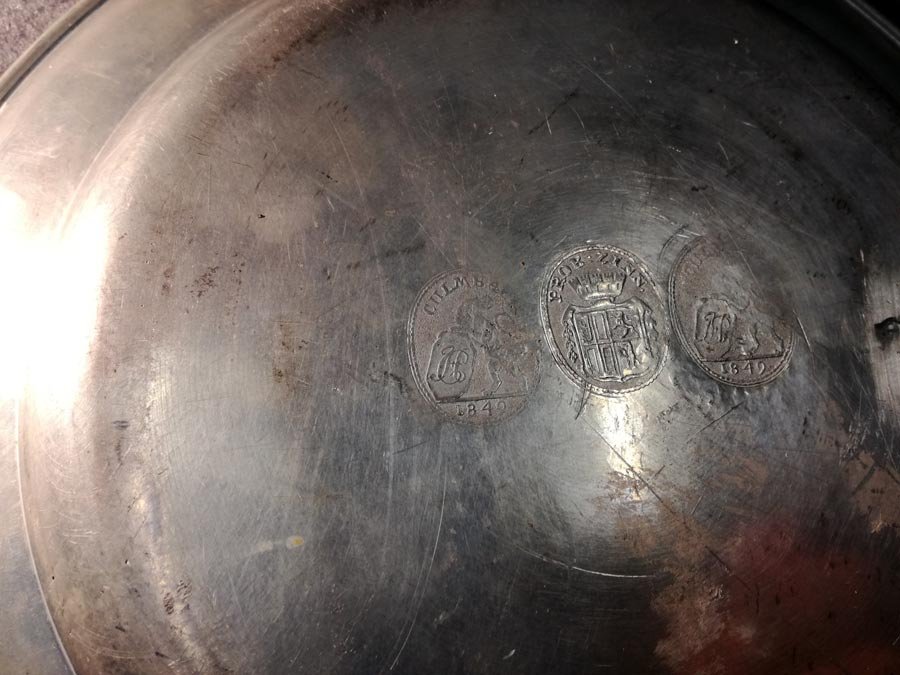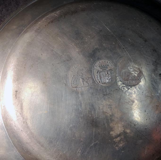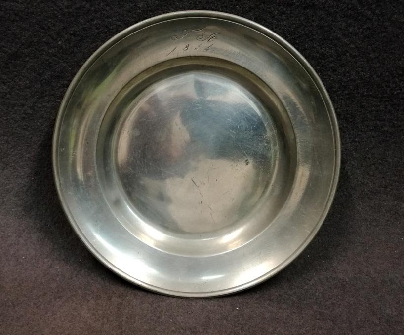 Zinnteller 1854, gepunzt. Marken: Kulmbach, Johann Christian Hohenner