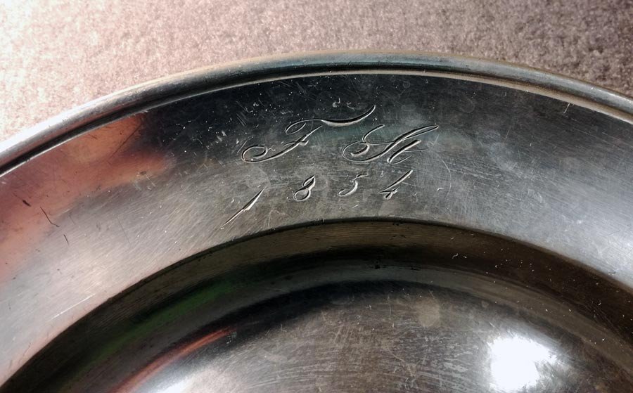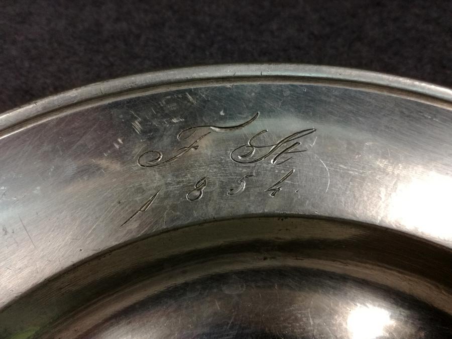 Schöner alter Teller mit Monogram: F St und Datum: 1854.