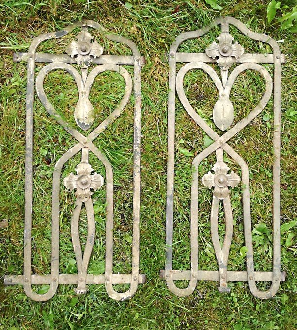 Zwei Fenstergitter, schmiedeeiserne Gitter um 1900.