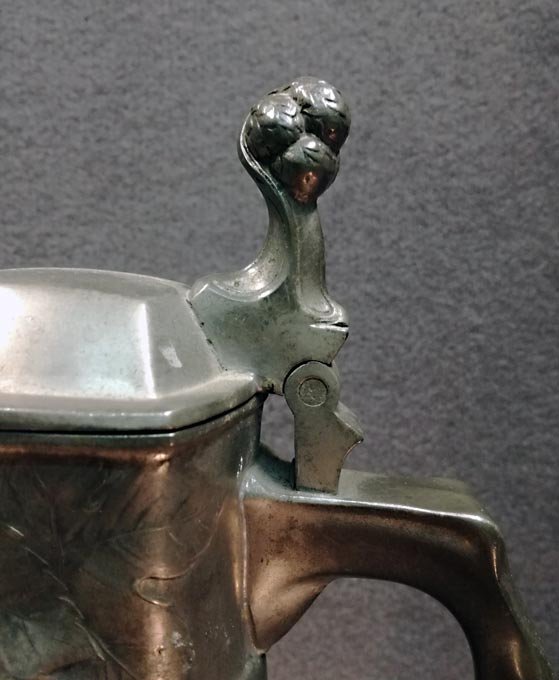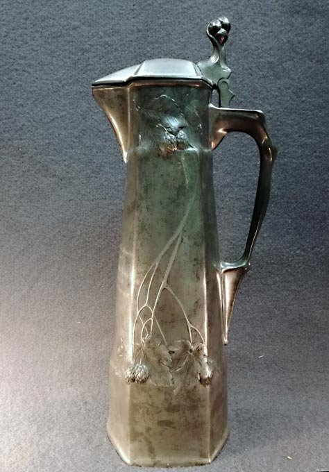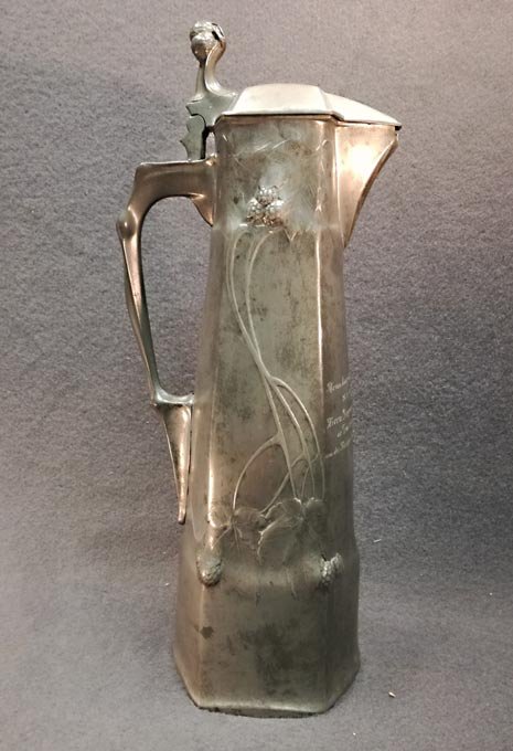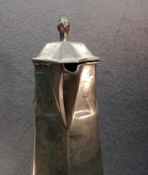 Zinnkanne, Jugendstil. Kaiserzinn, Entwurf von Hugo Leven um 1903.