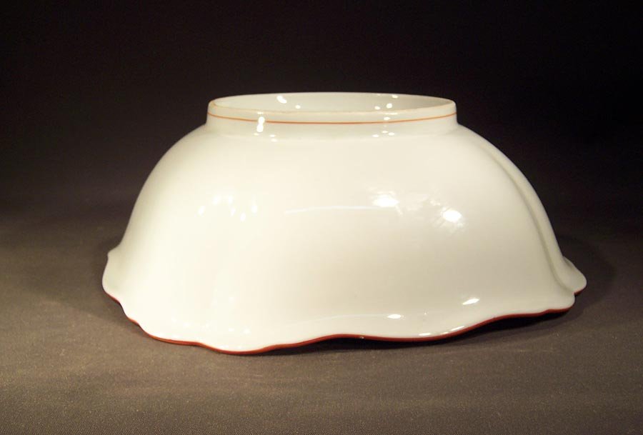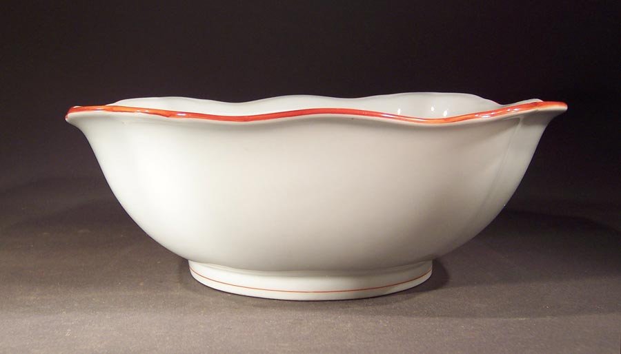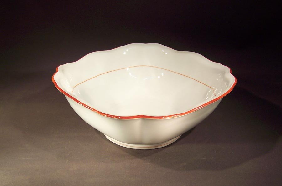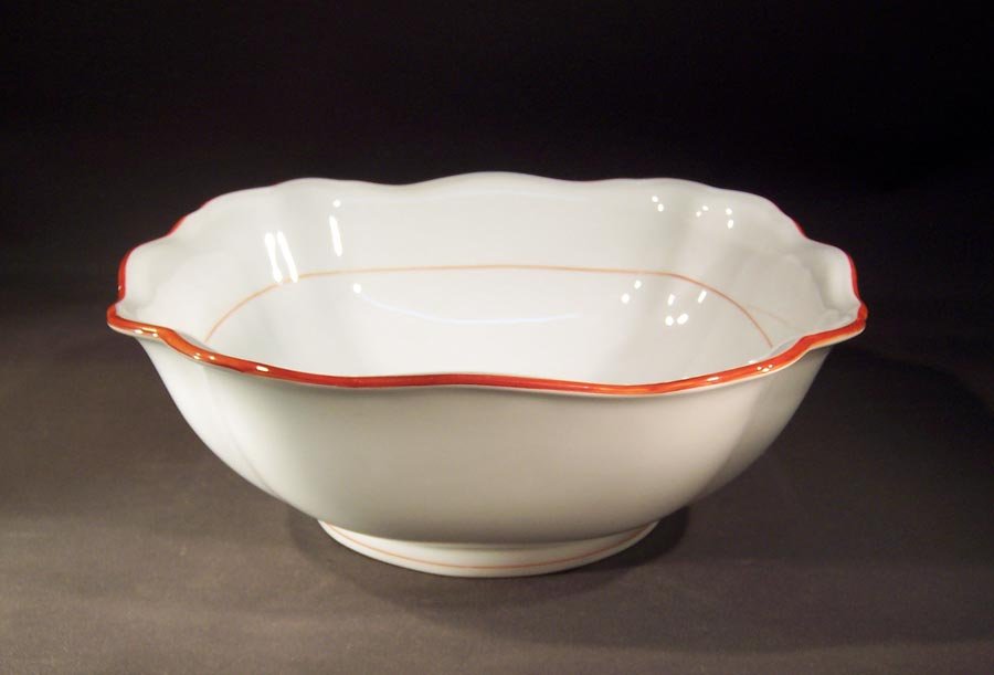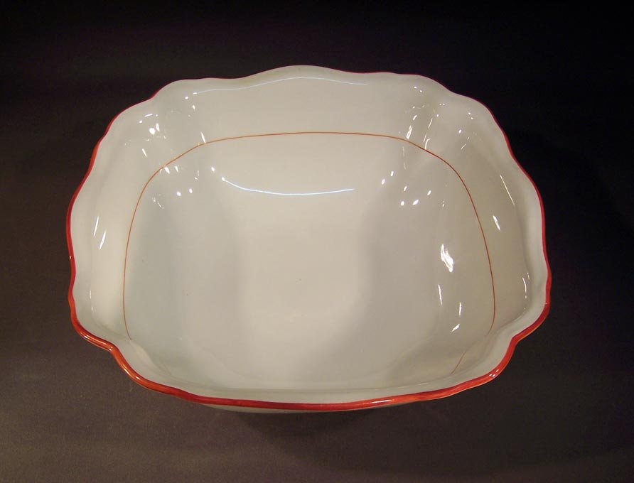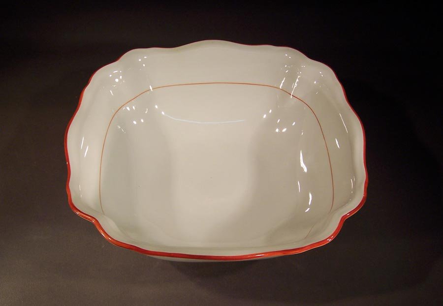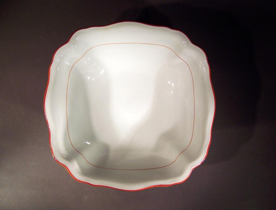 Manufaktur Meissen, große Viereckschale, Rote Koralle; Roter Rand mit rotem Faden Innen und am Standring.