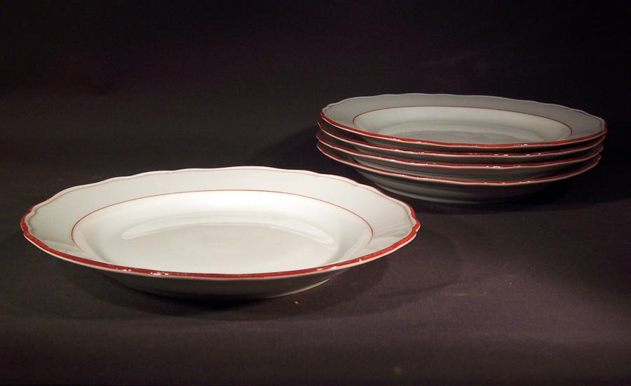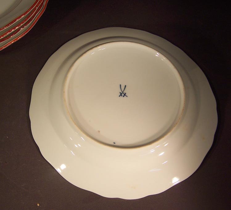 Meissen, 5 Teller Rote Koralle; D. 22 cm.