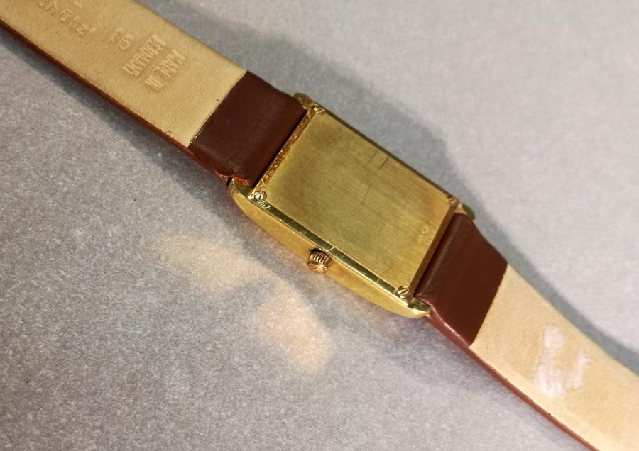 Mit Lederarmband. Keine Etui oder Schachtel.