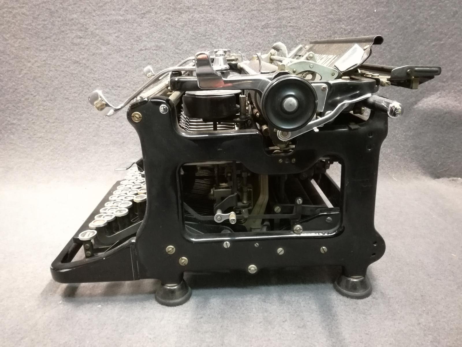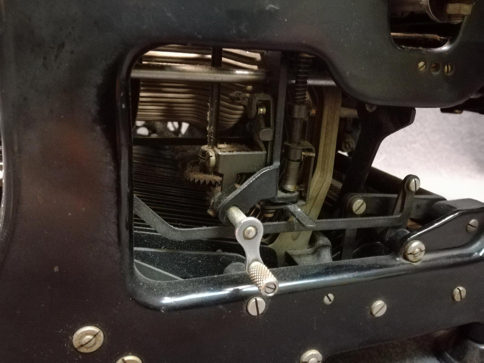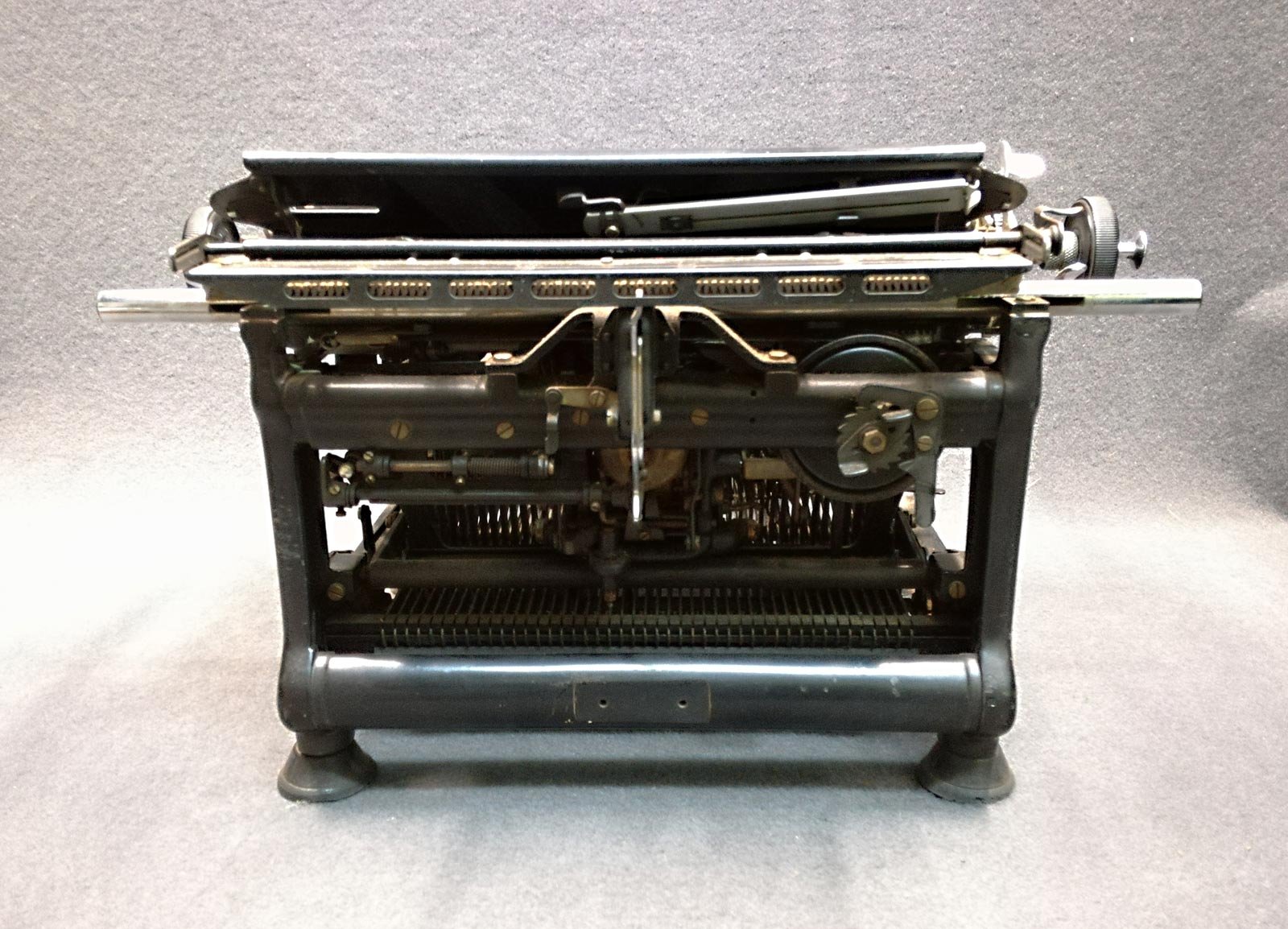 Sehr dekoratives Gerät sehr gut erhalten und funktionstüchtig. Der Schlitten läuft einwandfrei. Das Farbband ist trocken. Leicht gereinigter Fundzustand.