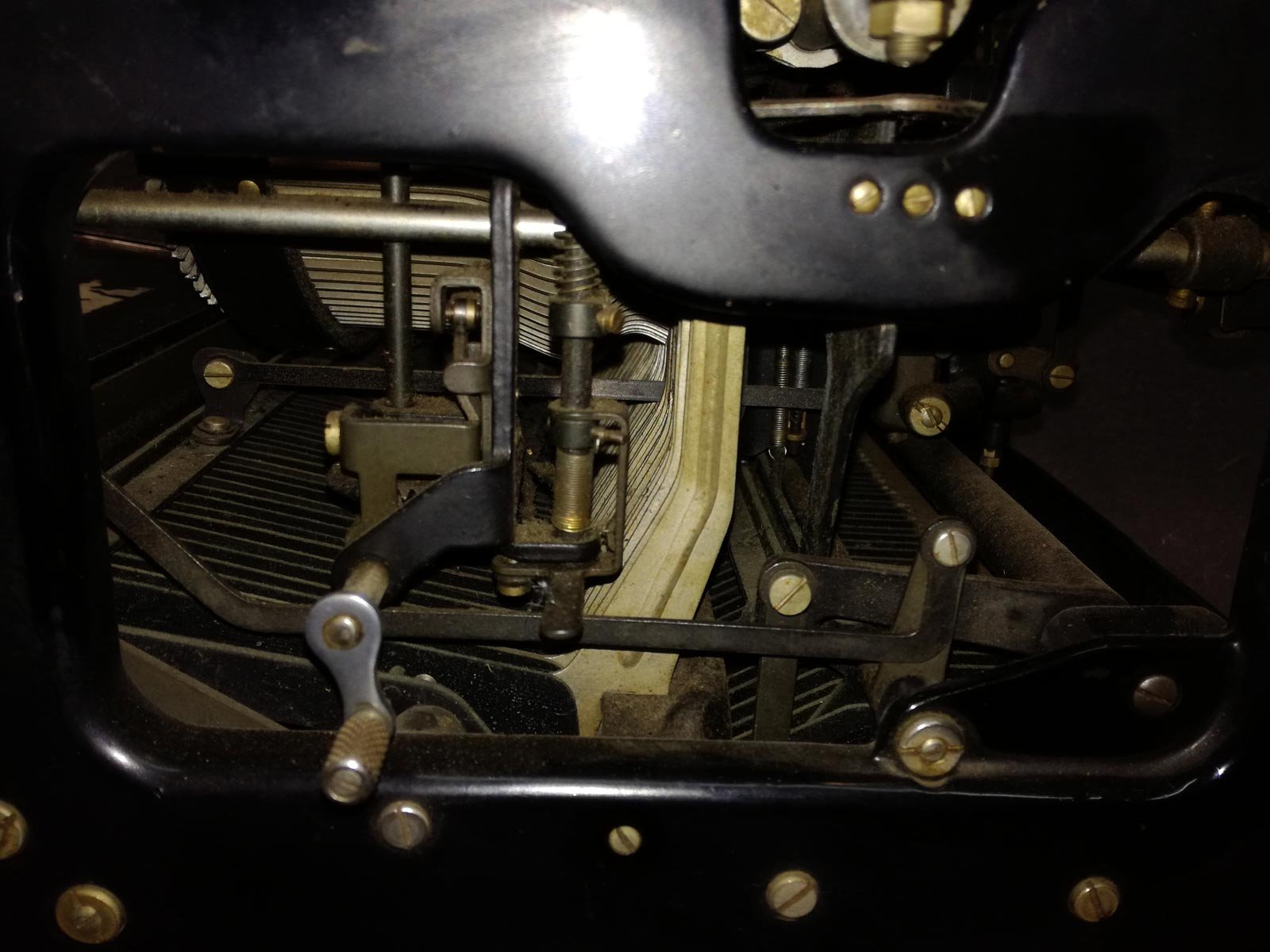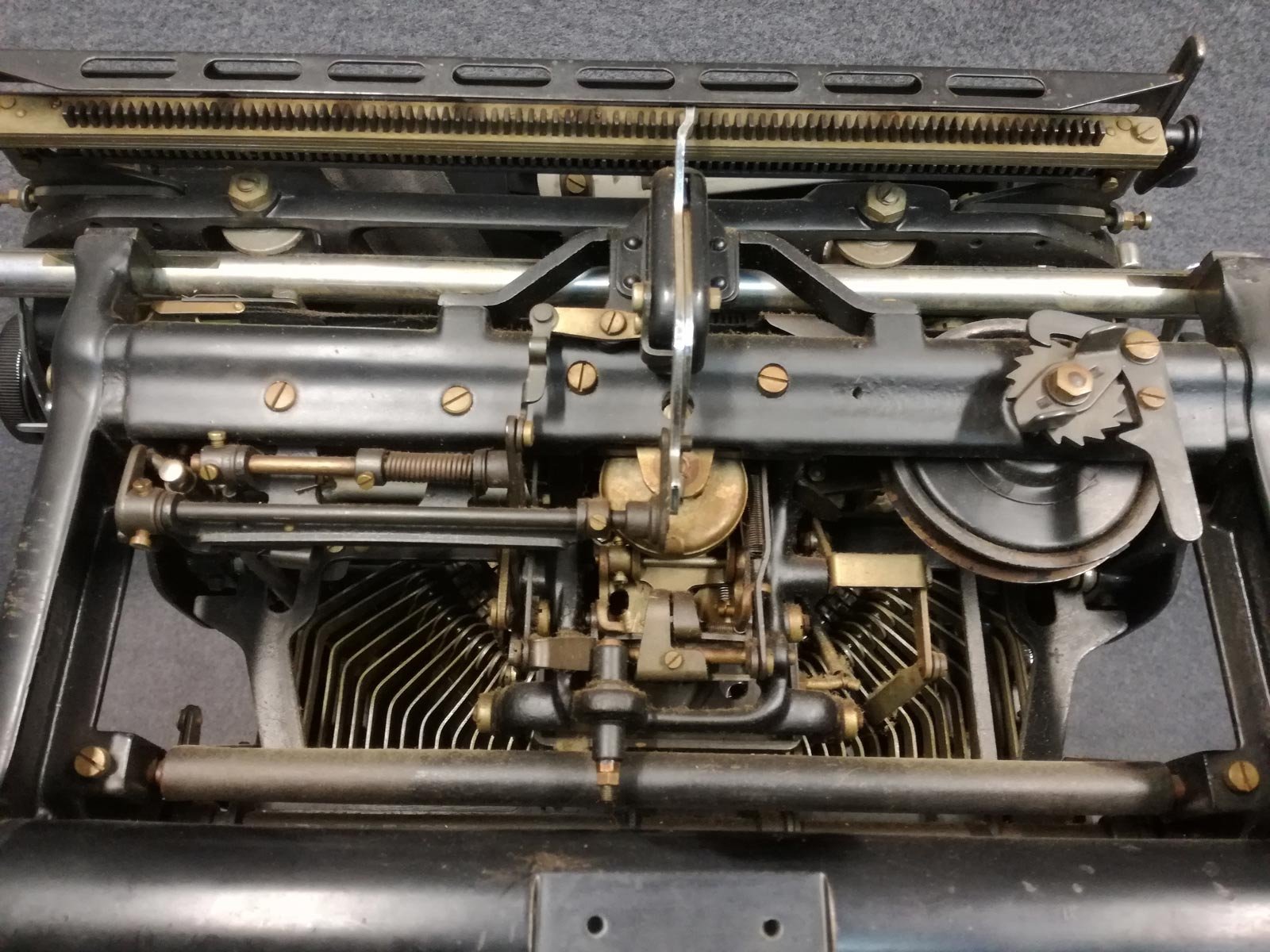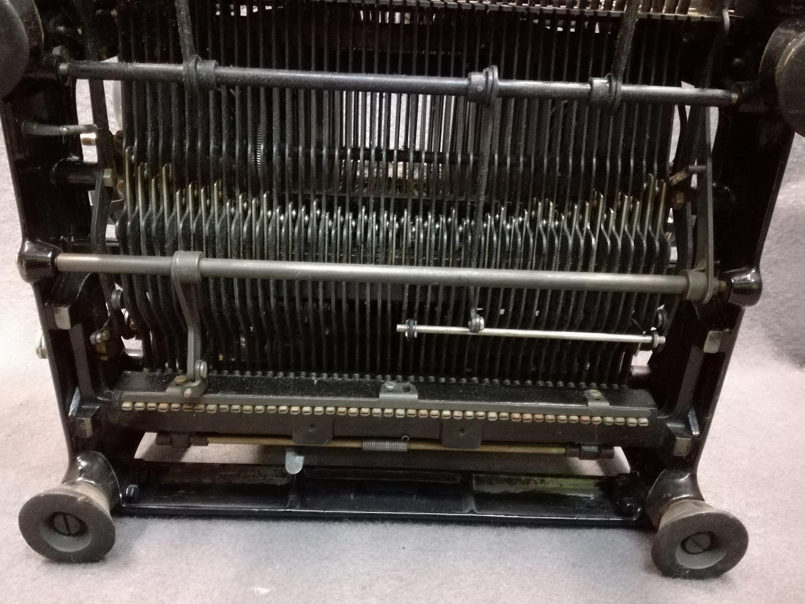 Sehr dekoratives Gerät sehr gut erhalten und funktionstüchtig. Der Schlitten läuft einwandfrei. Das Farbband ist trocken. Leicht gereinigter Fundzustand.