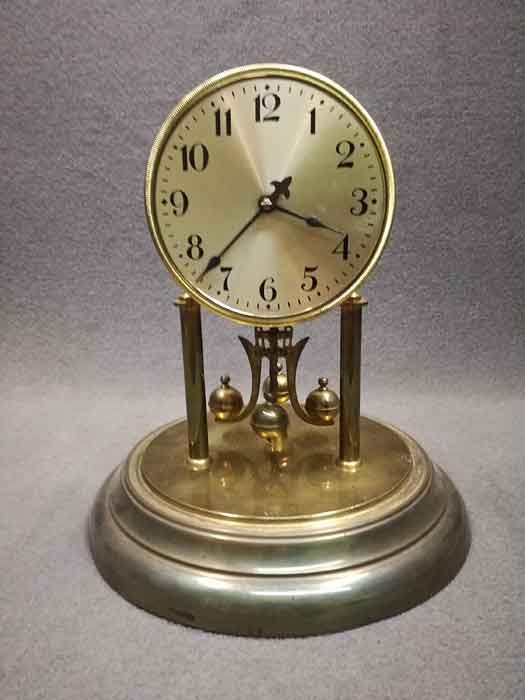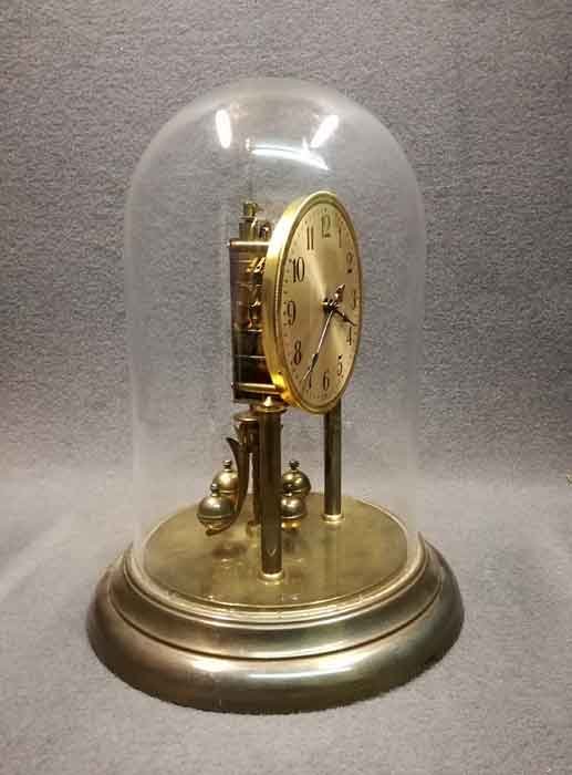 Mechanische Dehpendeluhr, Jahresuhr unter Glasdom. Funktionstüchtig, läuft durch. Regulierung erforderlich. Glasdom i.O.