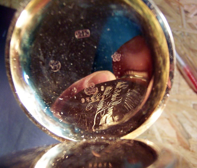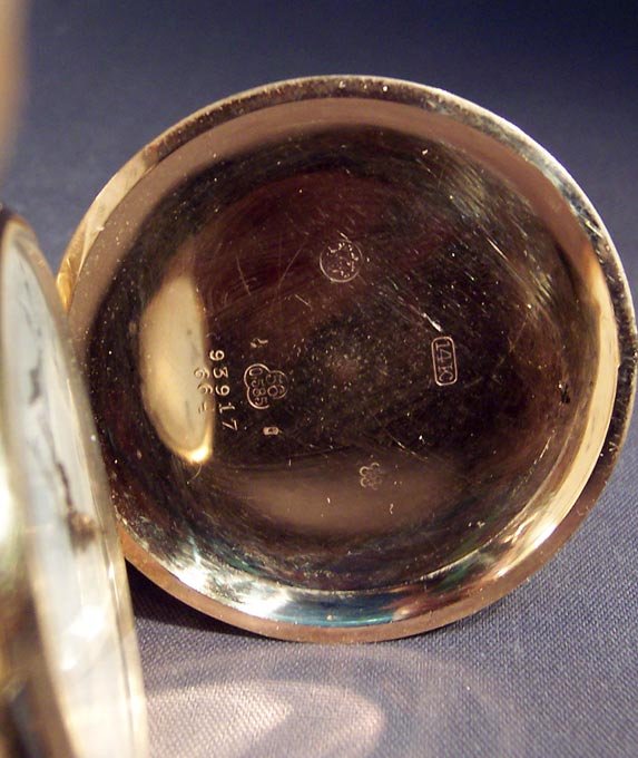 Alle drei Deckel mit Goldstempel -585- bzw. -14K- (die äußeren) und verschiedene andere Stempel.