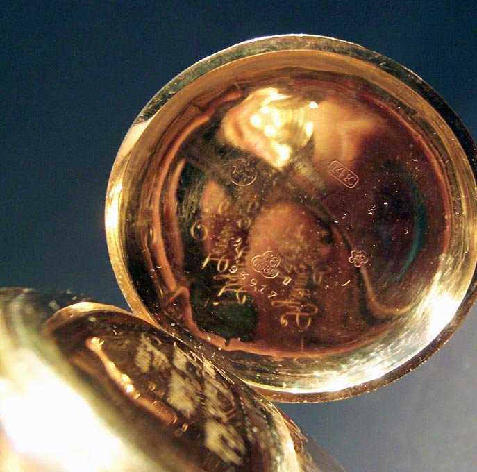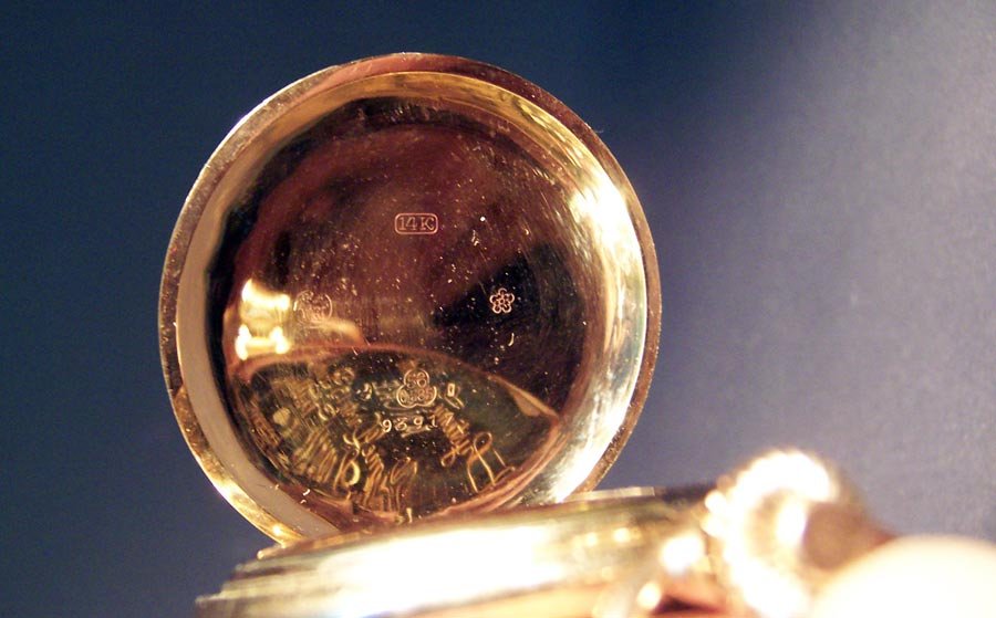 Glattes Gehäuse ohne Gravuren. Alle drei Deckel 585er Gold.