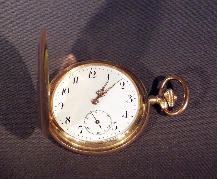 Goldene Taschenuhr mit Sprungdeckel, System Glashütte - 585er Gold (14K)