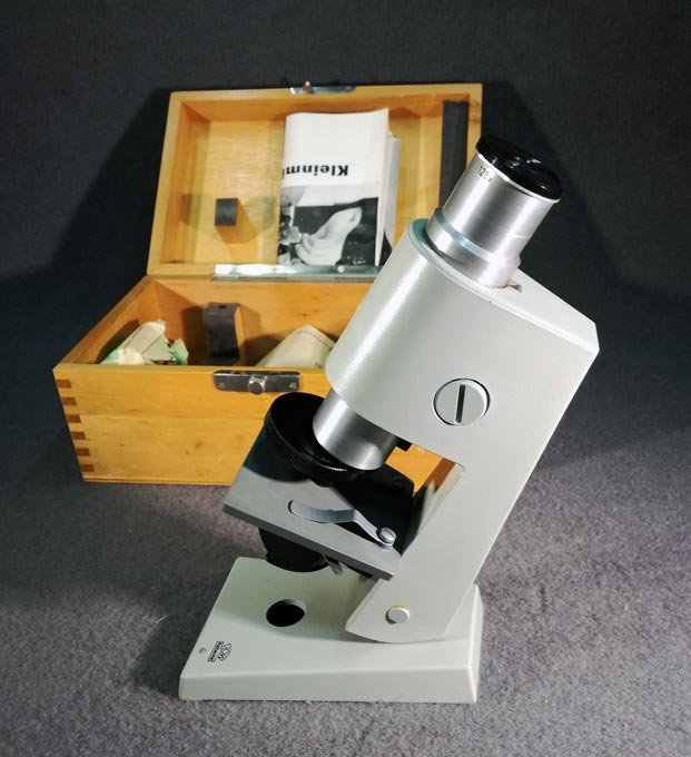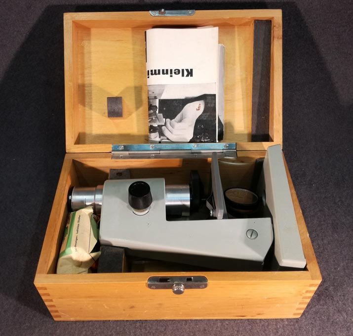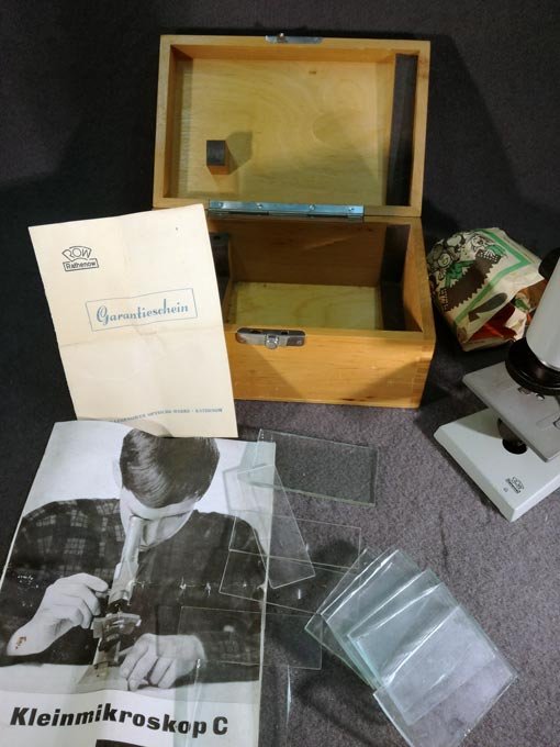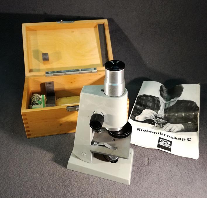 Mikroskop, Kleinmikroskop C, ROW Optische Werke Rathenow, Kasten+ Beschreibung