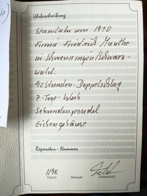 Standuhr um 1910, Friedrich Mauthe, Schwenningen, Schwarzwald