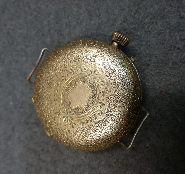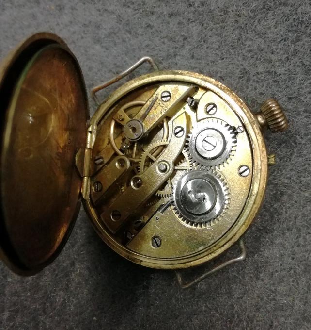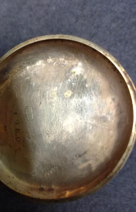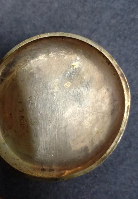 Das Uhrwerk läuft an und läuft durch. Stundenzeiger fehlt, Zifferblatt mit Haarriss. Die Deckel schließen alle sauber.