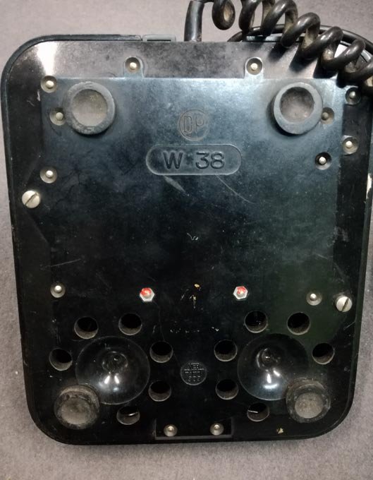Telefon W 38, Herstellung verm. 50er Jahre. Wählapparat - W 38, Entwicklung 1938 von Simens und Halske aus dem Vorgängermodell 36.