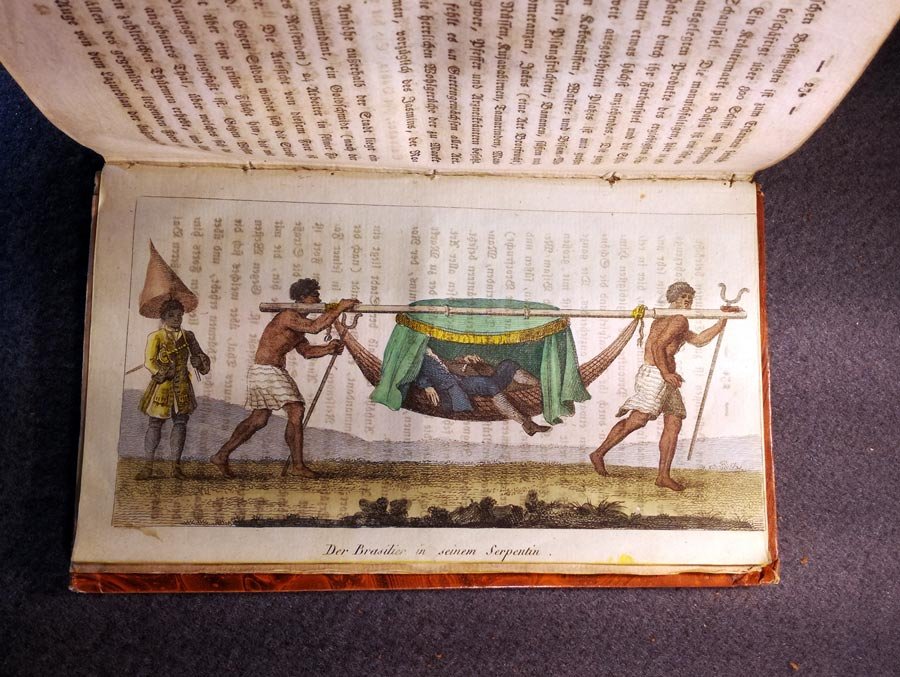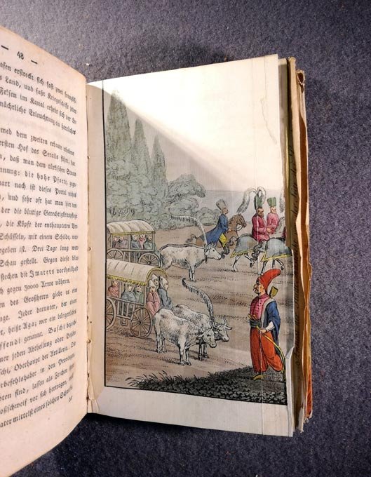 57 colorierte Tafeln (u.Vbh.). von verm. 60. Zustand wie auf den Fotos, für Details bitte anfragen. Die letzte Tafel mit 1/2 Verlust.