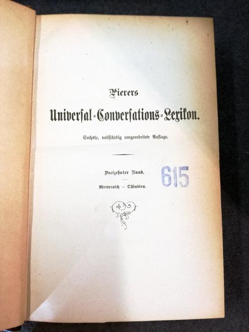 Pierers Universal Conversations Lexikon. Neuestes encyklopädisches Wörterbuch aller Wissenschaften, Künste und Gewerbe. Sechste vollständig überarbeitete Auflage von 1875 -1878.