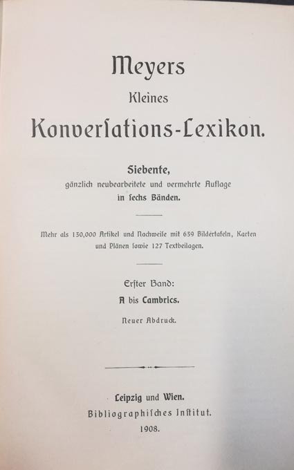 Meyers kleines Konversationslexikon. Siebente neubearbeitete und vermehrte Auflage in sechs Bänden.