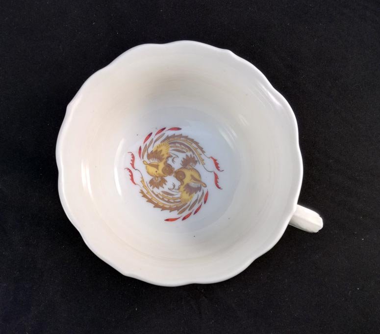 Teegedeck bestehend aus Tasse mit Untertasse und Kuchenteller