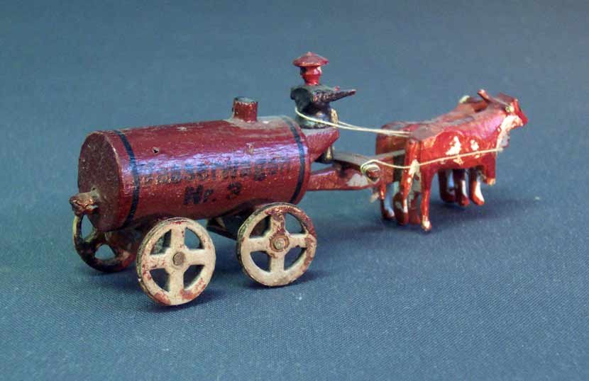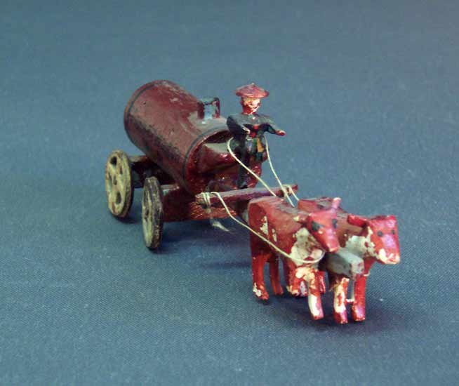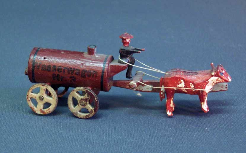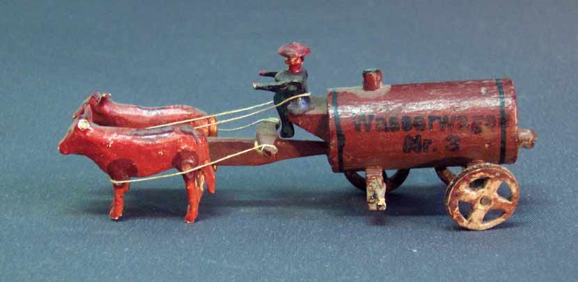 Ochsenkarren, altes Erzgebirgsspielzeug, Wasserwagen Nr. 3.