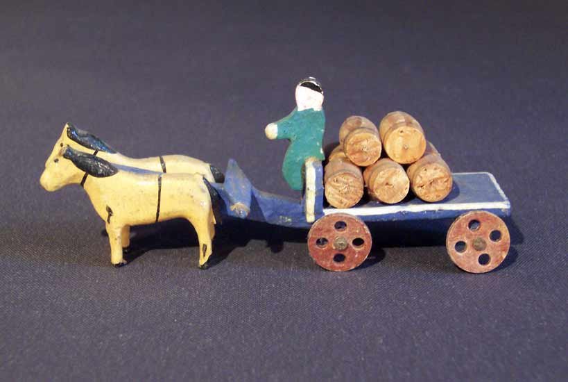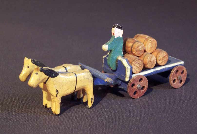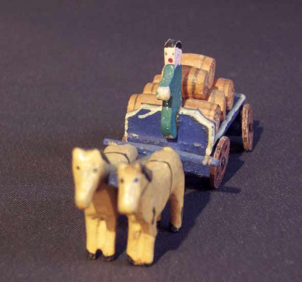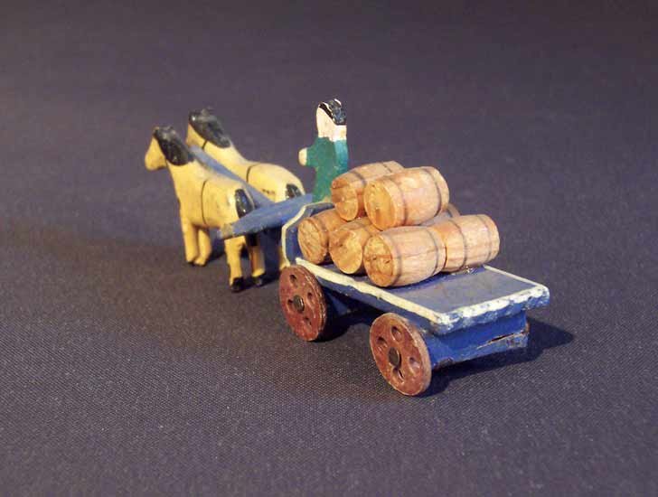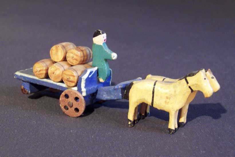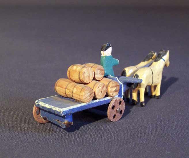 Holzspielzeug, Erzgebirge um 1920. Faßwagen, Bierkutsche.