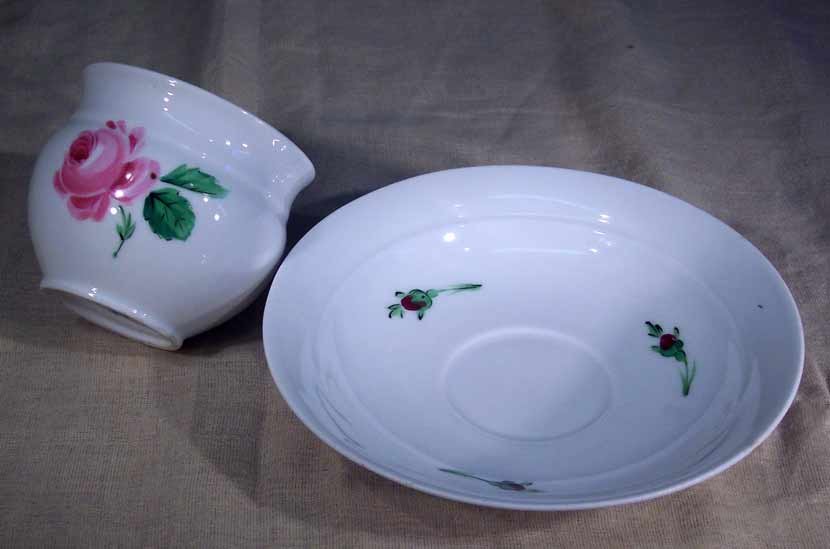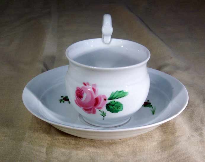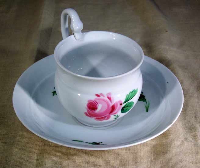 Schwanenhenkeltasse, Rote Rose; Meissen vor 1860