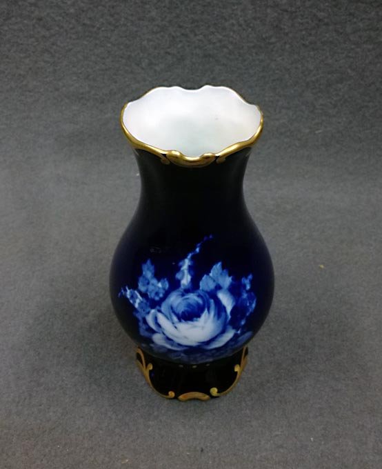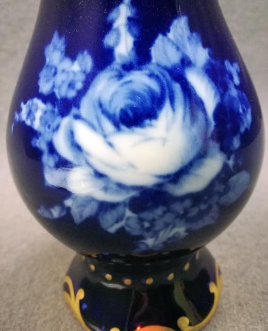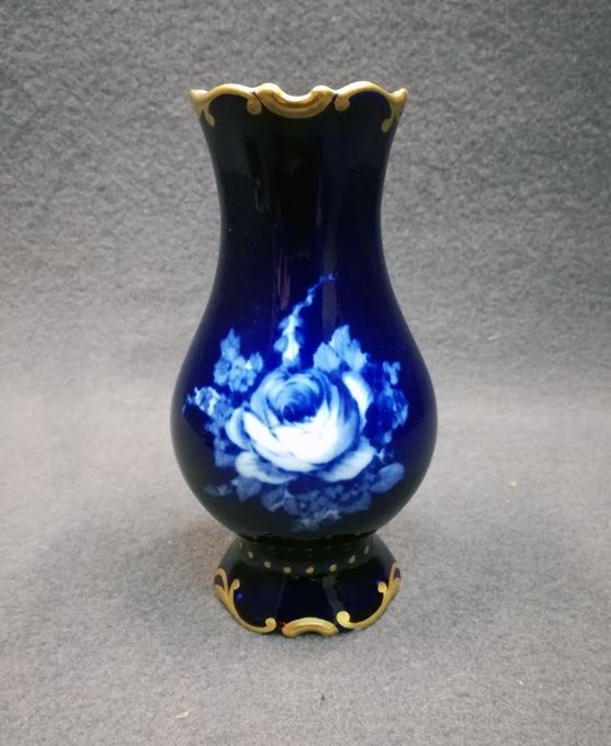 Pirkenhammer,Vase Kobaltblau mit Gold, weisse Rose