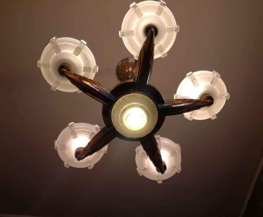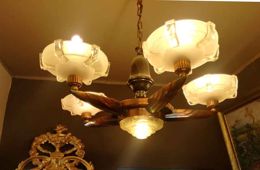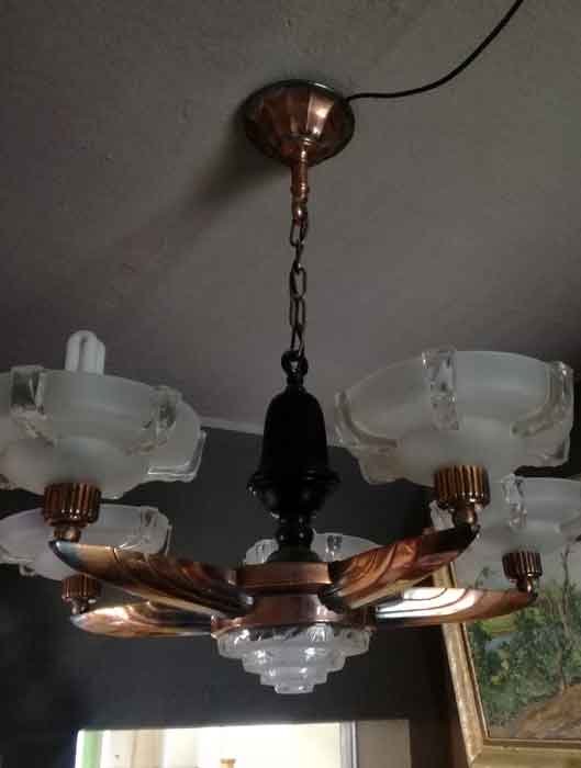 Lampe, Art Deco um 1925, verm. Frankreich. Original Glasschirme.