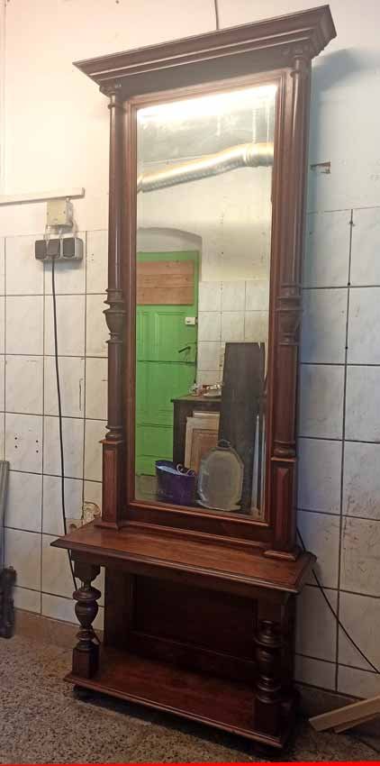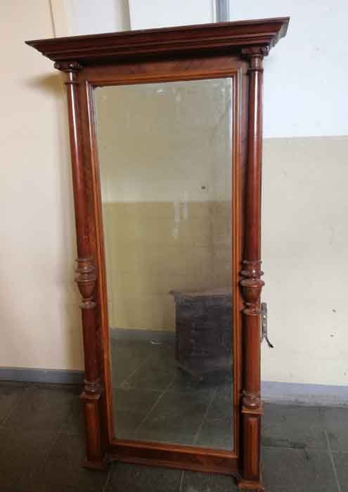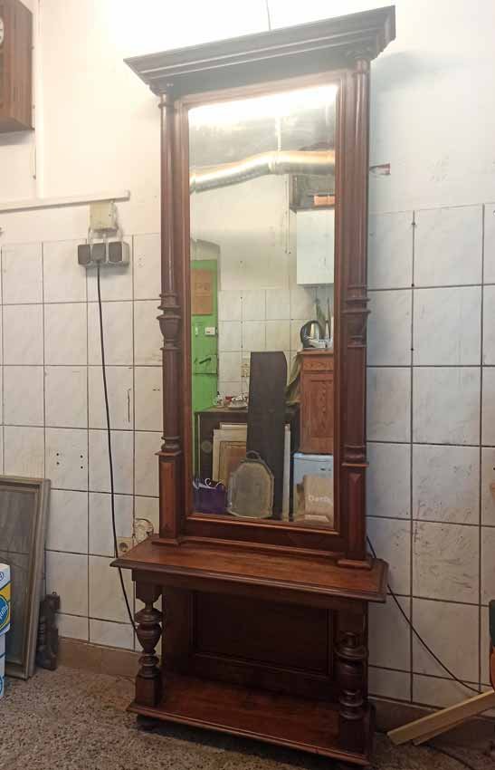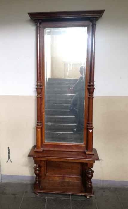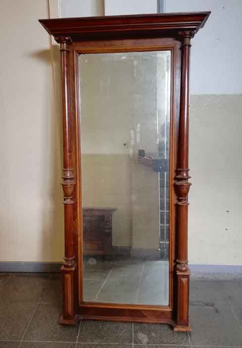 Spiegel, Gründerzeit um 1880. Säulenspiegel mit Konsole. Nussbaum.