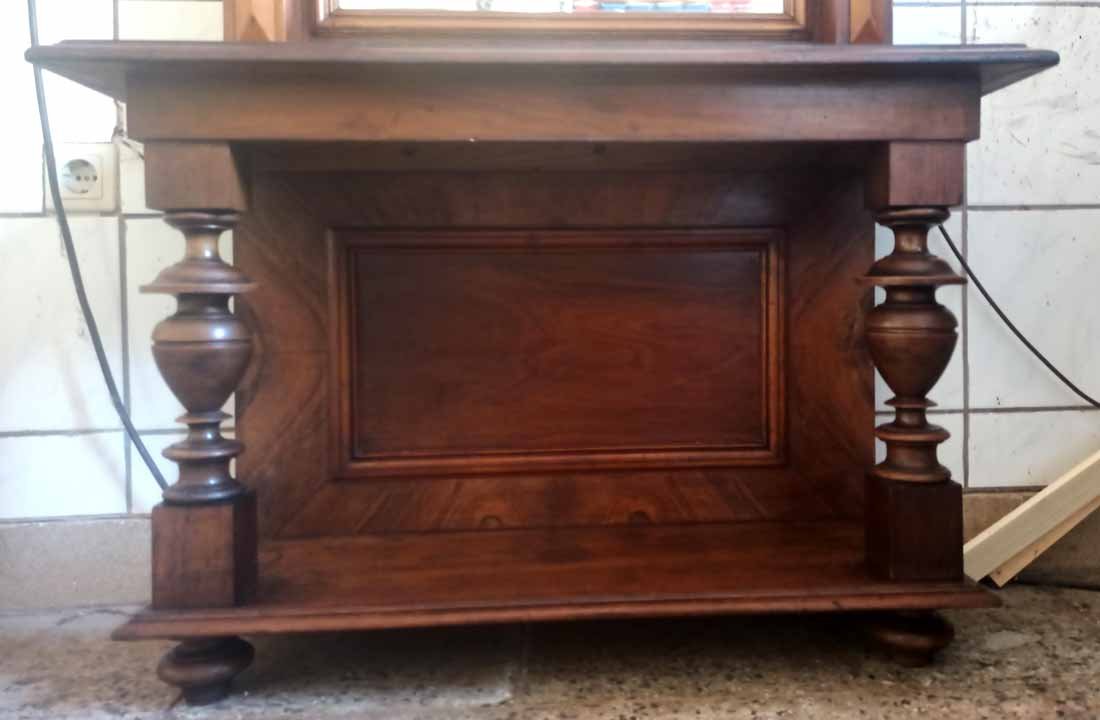 Gründerzei-Spiegel mit Säulen und Konsole, Nuss um 1880