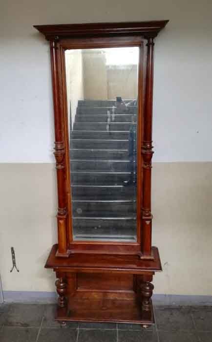 H. gesamt 226 cm (Spiegel 166 cm, Konsole 60cm), B. Spiegel 78/86 cm, B Konsole 87 cm, T. 39 cm