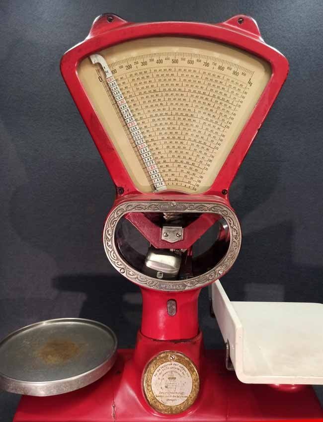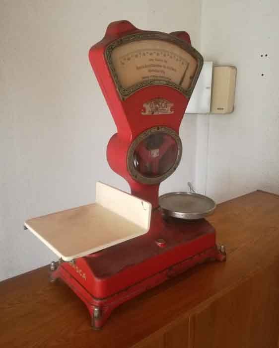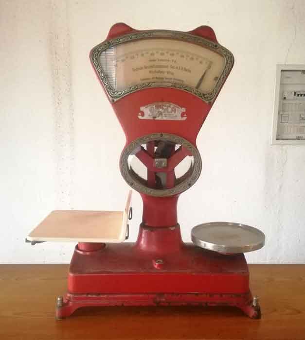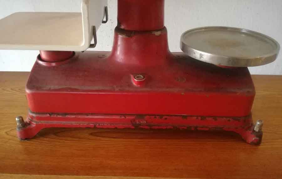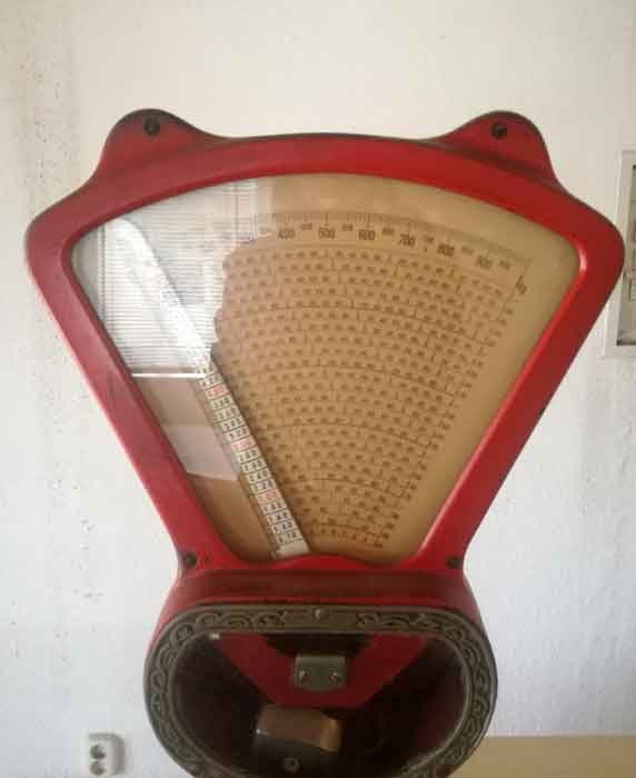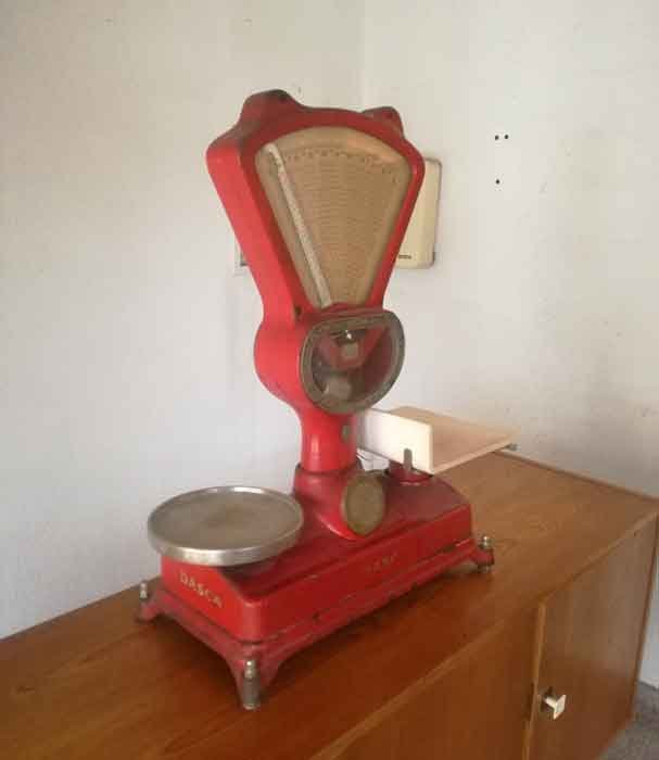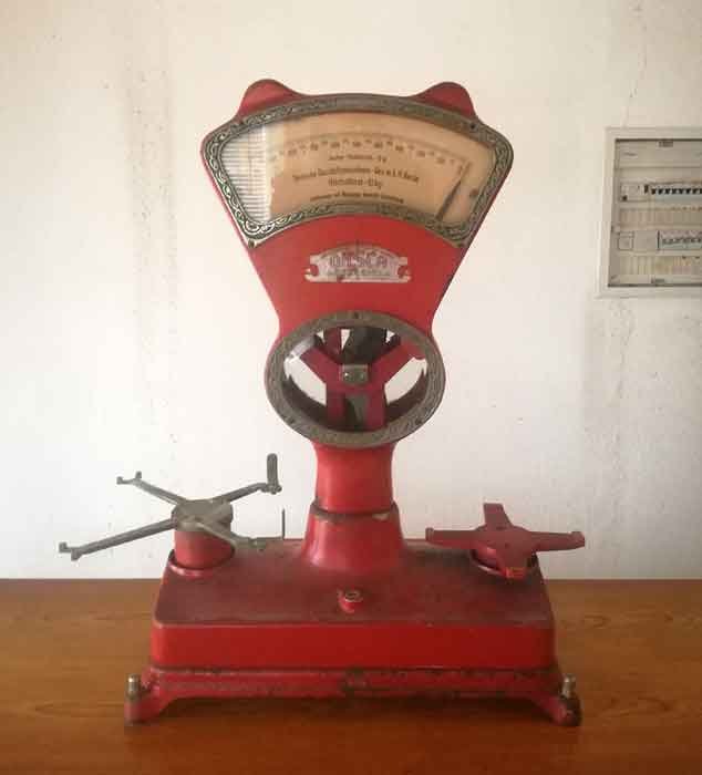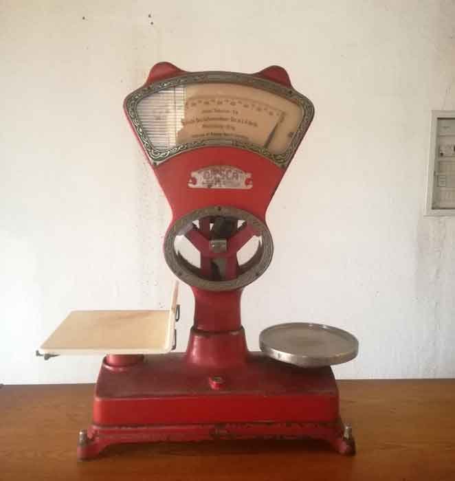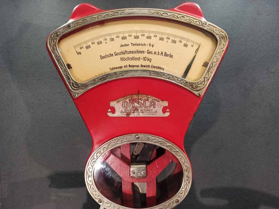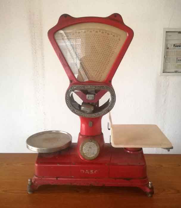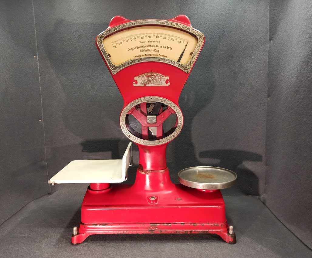 DASCA Dayton Waage, Type 301, No.24183,  1920er Jahre. Original, vollständig und funktionstüchtig. DEGEMA - Deutsche Geschäftsmaschinen Gesellschaft m.b.H. Berlin. Dayton amerikanische Firma der 1920/40er Jahre, deren Geräte durch die DASCA-Gesellschaft in Europa importiert wurden. Aufgrund der hohen Kosten wurden hier nur wenige Exemplare verkauft. Zustand siehe Fotos, gereinigter Fundzustand. Technisch funktionstüchtig und vollständig. Außen mit Lackabplatzungen,- abrieb. Den optischen Zustand würde ich Shabby Chic benennen, dekorativ-authentisch.