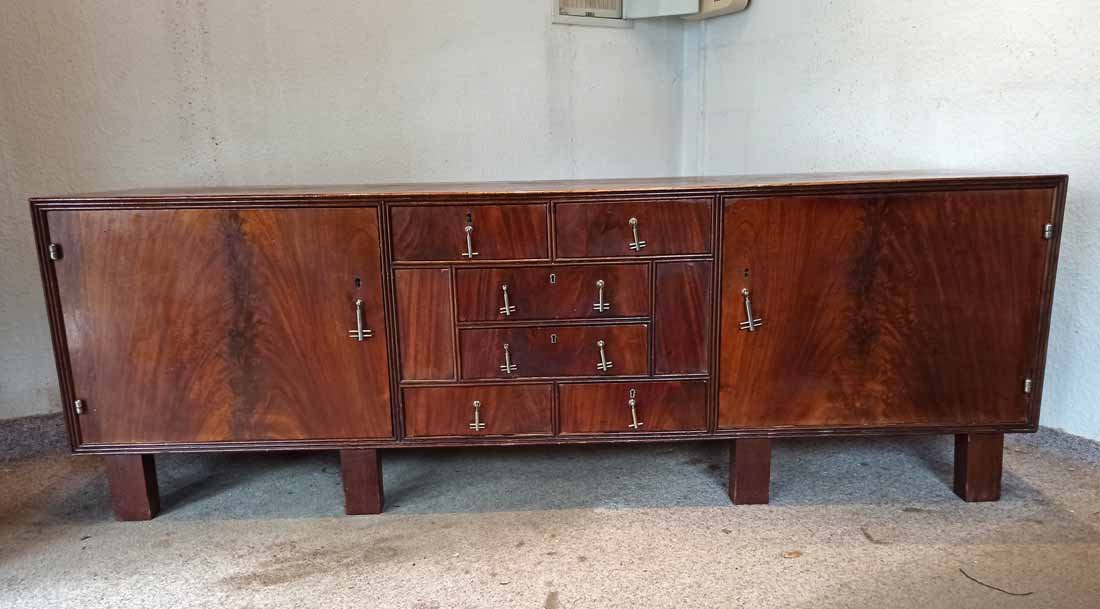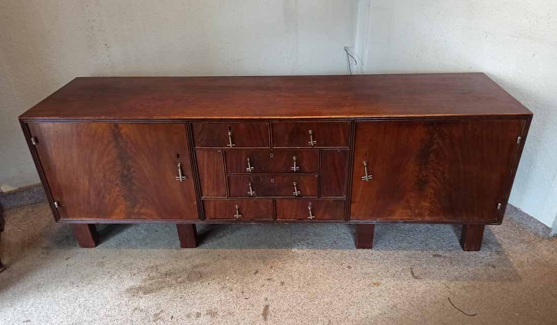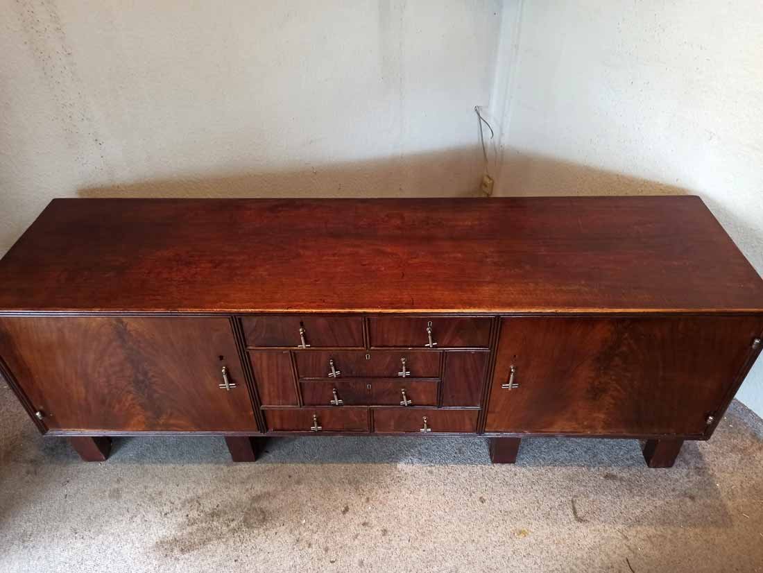 Side Board, Anrichte Art Deco von 1928. Zweitürig mit ja Einlegebrett, 6x Schubkästen und zwei Geheimfächern. Guter Zustand mit Nutzungsspuren, ein Fuß lose.