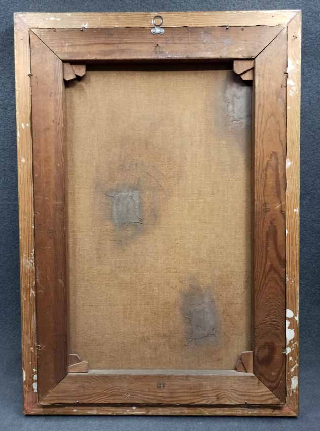 Johanna Soltz - Plagemann, Wald mit Flußlauf. Sommerlicher Waldeinblick entlang eines Flüsschens. Öl auf Leinwand, Re. unten signiert "Scholtz Plagemann". Pastose Malerei in zeittypischer Goldleiste. Drei alte Restaurierungen. 58/66 cm x 38/46 cm