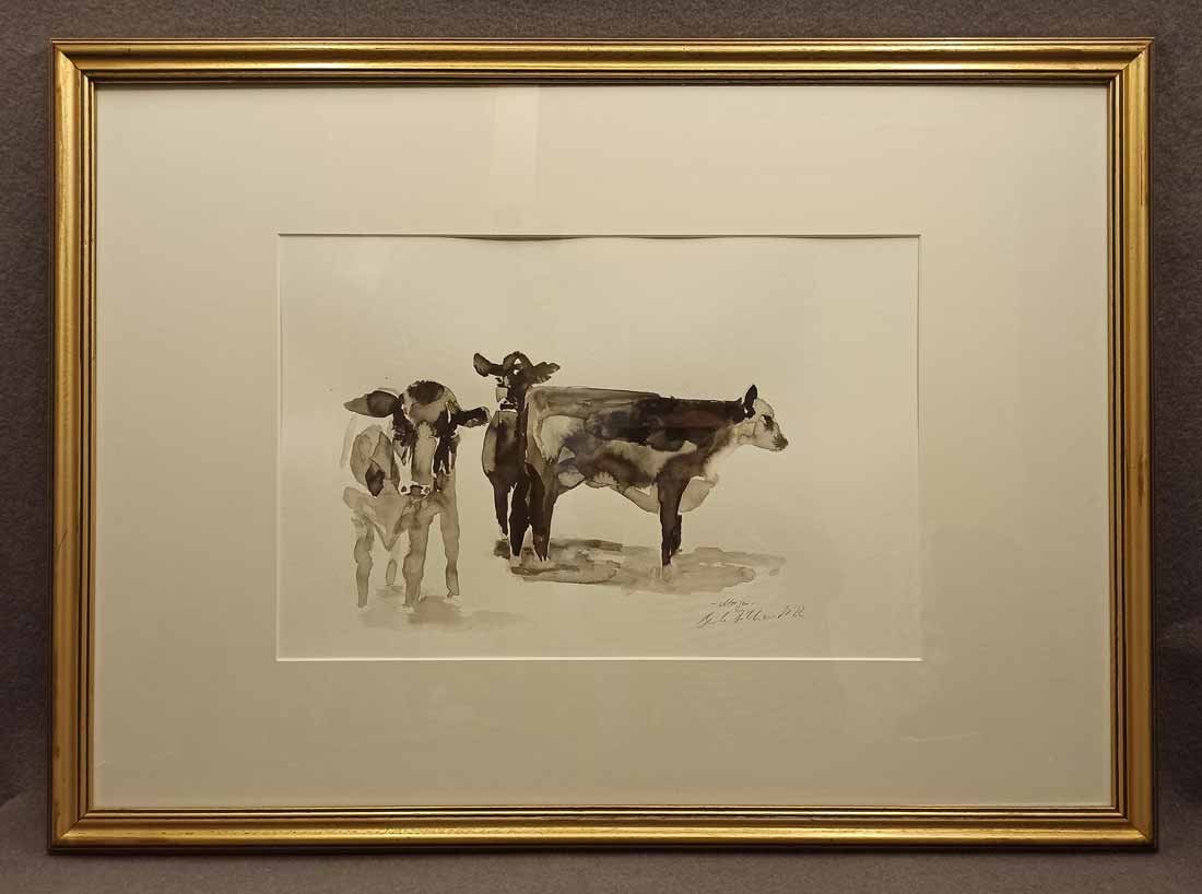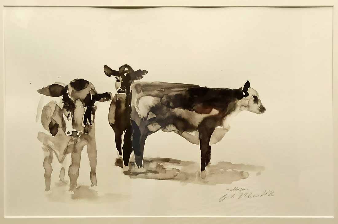Beate Bilkenroth, "Morgen" - Drei Kühe 2022, Tuschezeichnung. Re.u. bez.: "Morgens" und sig.: "Bilkenrroth 22". Gerahmt im Passepartout. H.xB. 29/55 cm x 44/75 cm