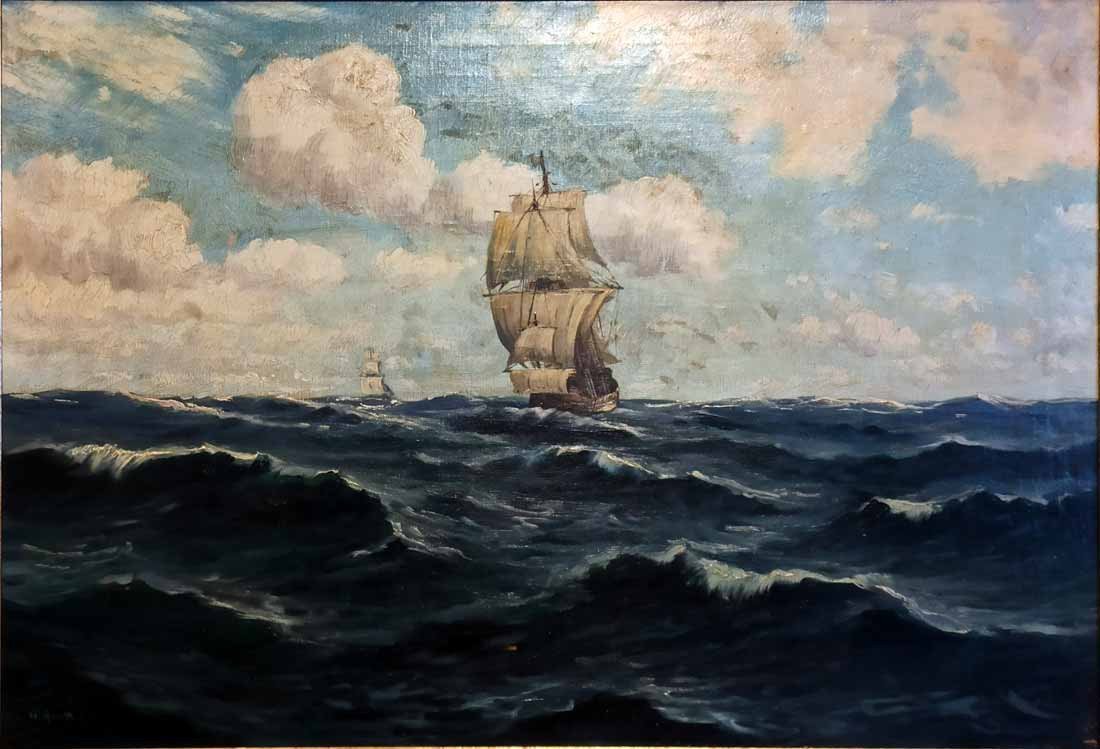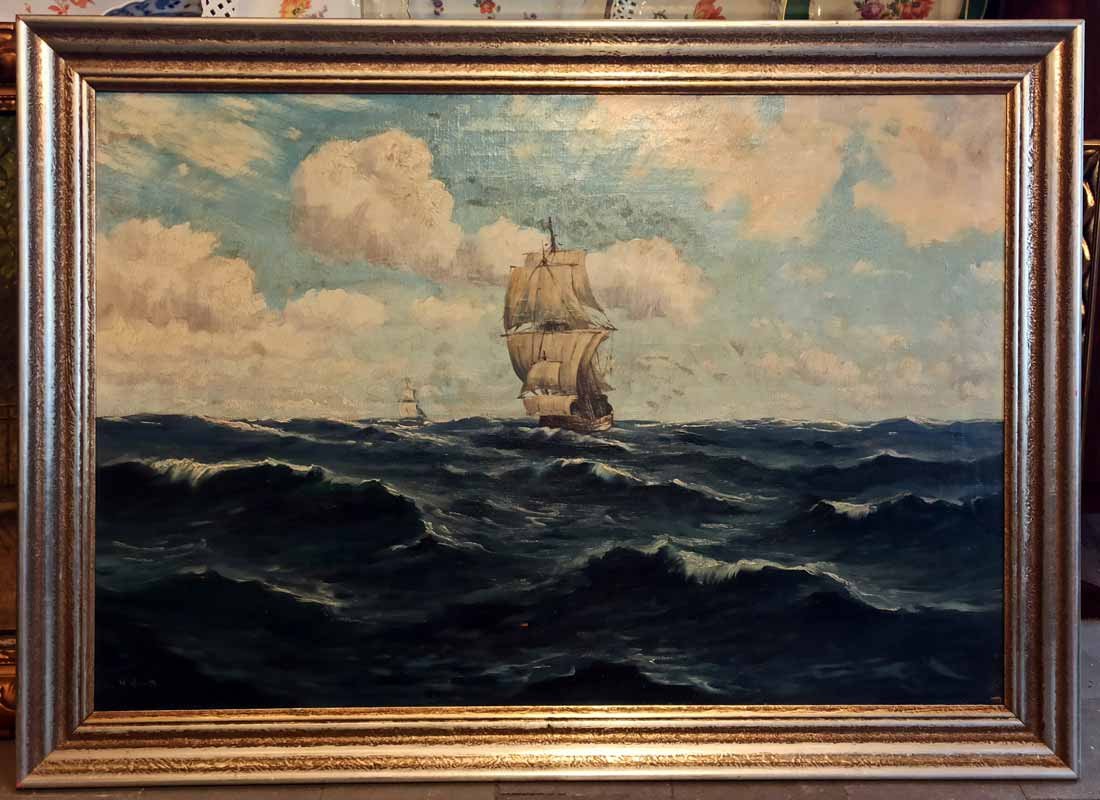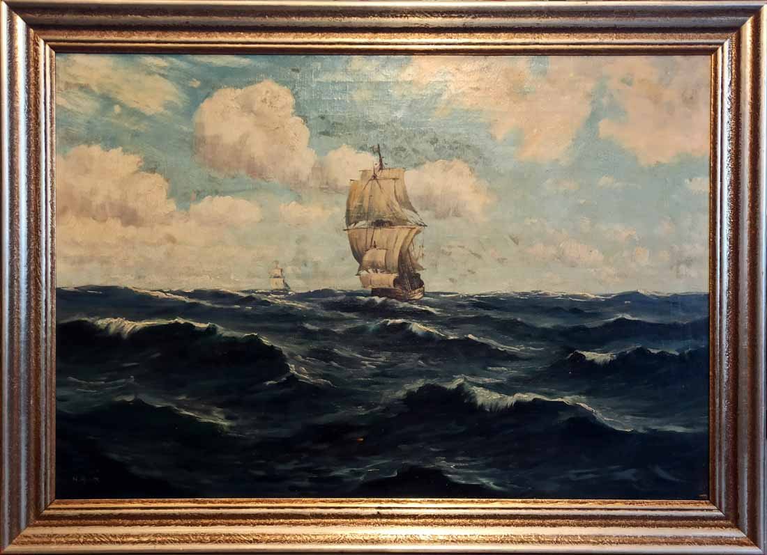 Willy Hanft, Segler in stürmischer See, Öl/Lwd. B.xH.  80/91 cm x 54/65 cm.